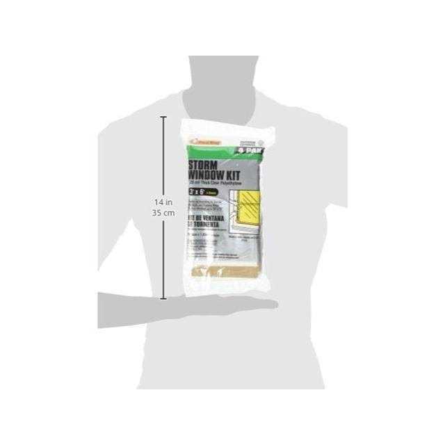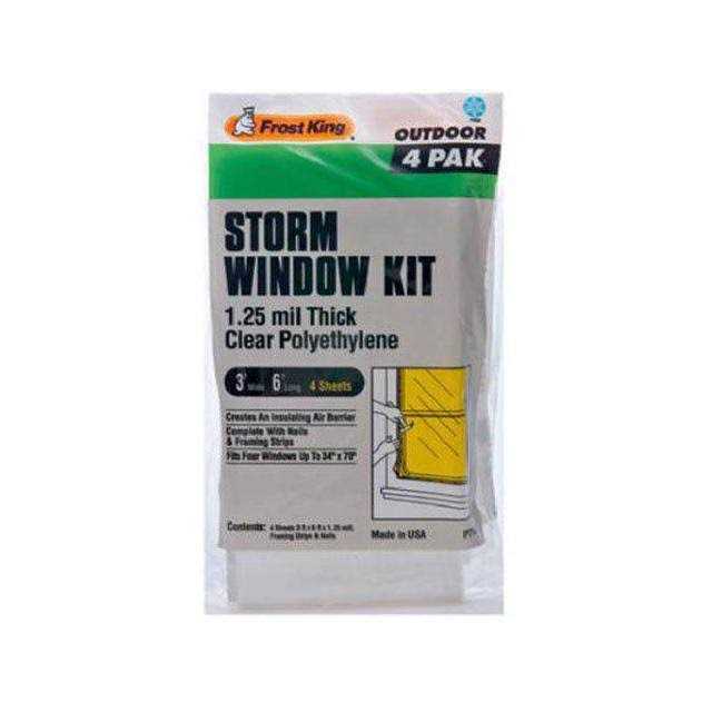 Clear, 1.25mm polyethylene sheeting creates an insulating air barrier. Comes with nails and framing strips. Fits up to four 34′′ x 70′′ windows. Polybagged.