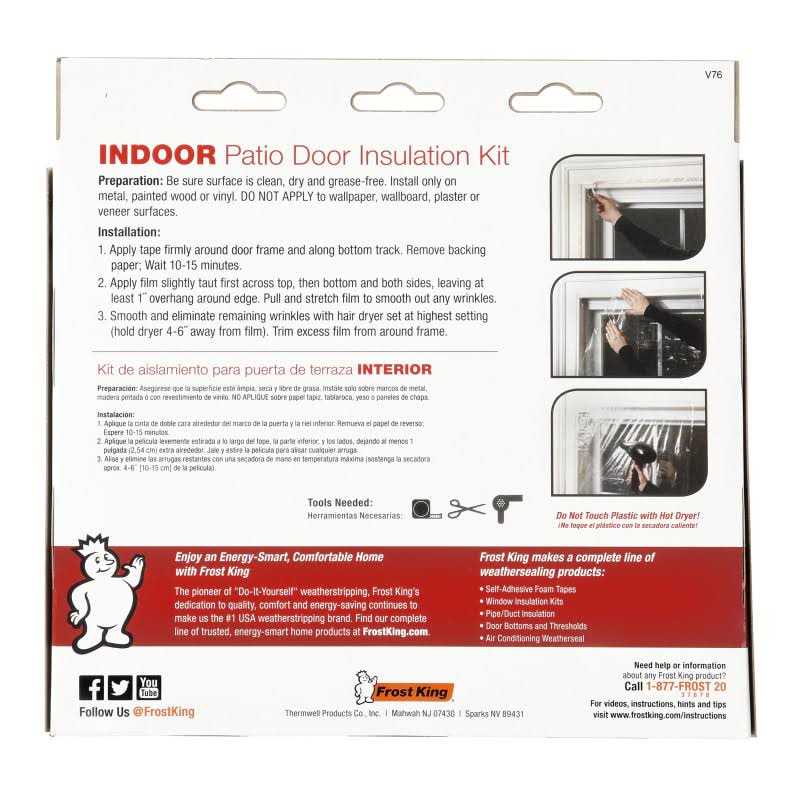 Up to 35% of the heat in your house can leak out of poorly insulated windows. Frost King Shrink Film is the perfect low cost solution to keeping drafts and cold out of your house. Easy to install, it takes just minutes to put them over all the windows in your house, Frost King Window Shrink Film will keep the heat in and the cold out all winter long. Crystal clear plastic sheet shrinks tight and wrinkle free with heat from an ordinary hand held hairdryer Includes double face tape Installs on metal, painted or varnished wood, or vinyl clad frames For indoor use only Covers one patio door or picture window Can be cut to fit using standard scissors Reduces energy costs by sealing drafty windows Increases your home s energy efficiency Easy to install Additional discounts apply for this item when purchased as Bulk.