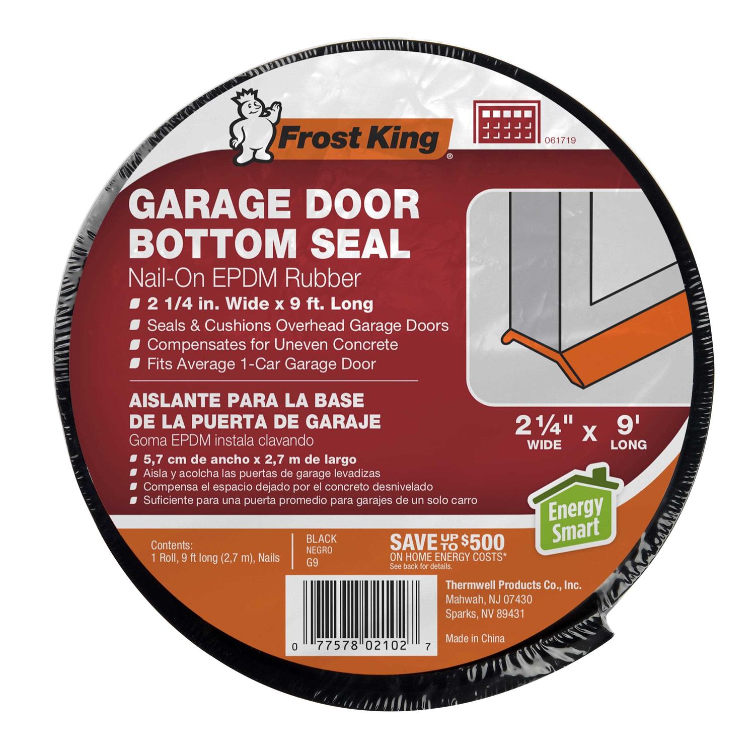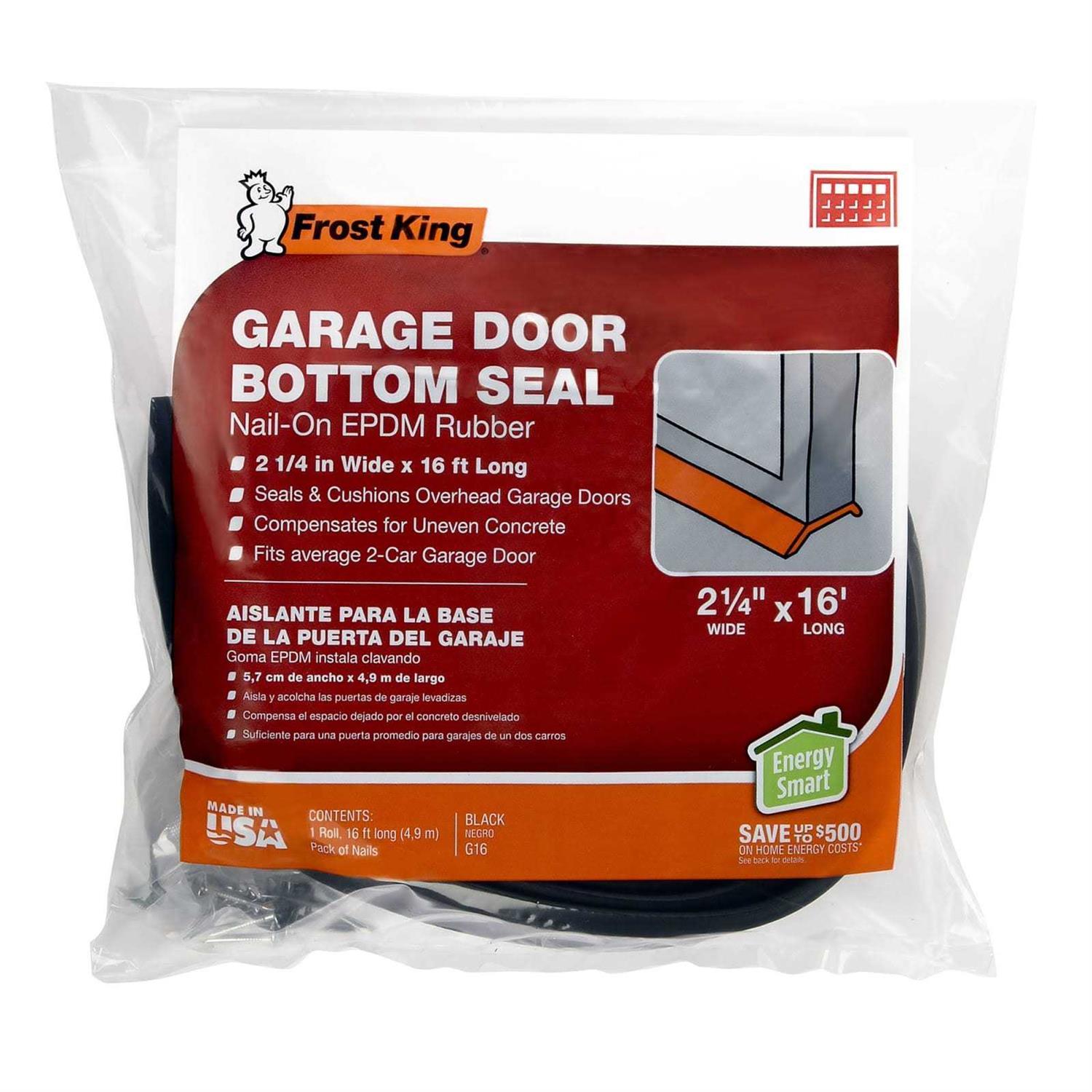 Frost King Nail-on garage door bottom seal cushions overhead garage doors as it seals out dust, drafts, dirt, water and insects. It’s specially designed channel shape compensates for uneven concrete door or uneven doors. It’s made for use on wooden doors and comes in sizes for one and two car garages.