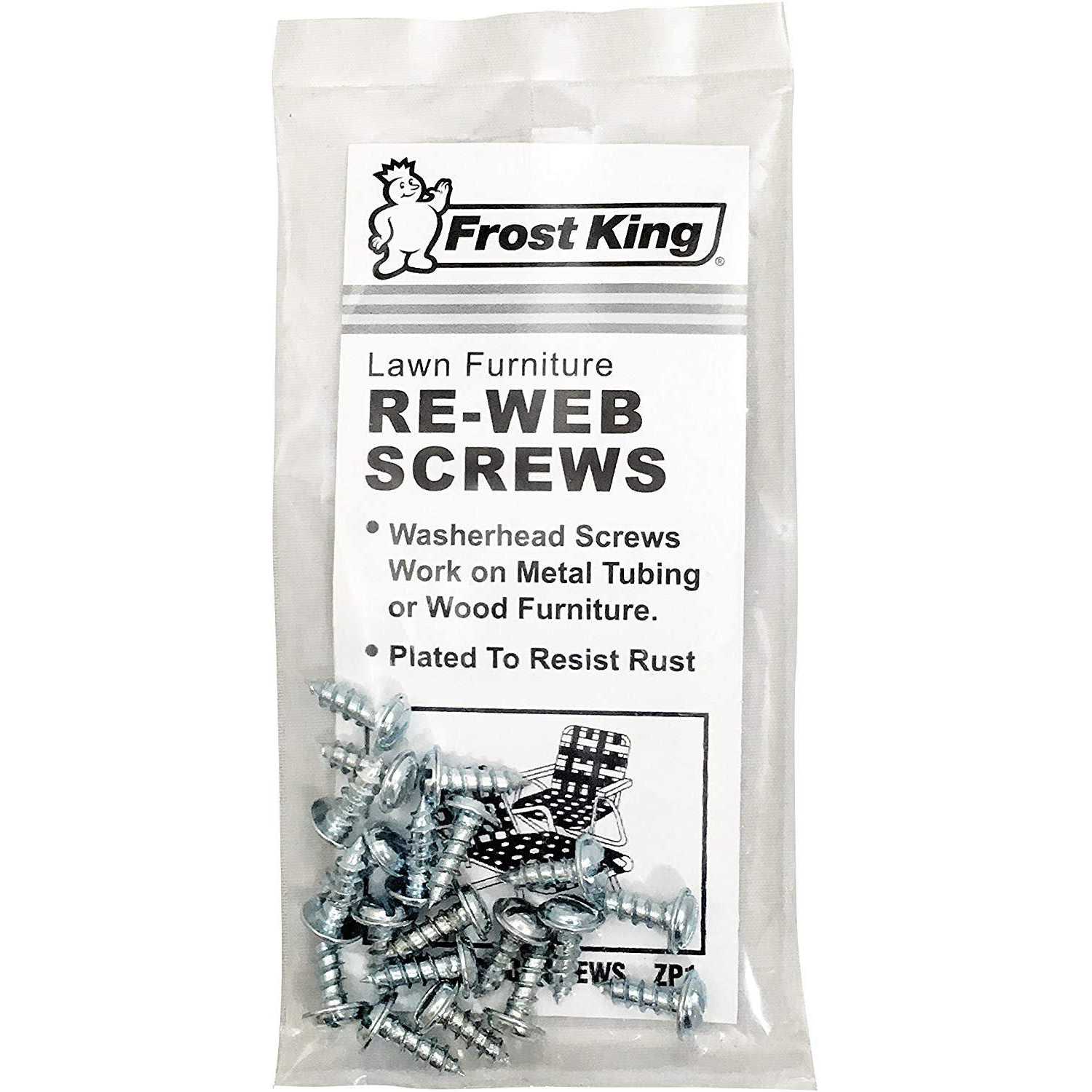 Fix your old lawn chairs and worn-out patio furniture with Frost King Lawn Chair Screws! These Re-Webbing Screws are made from plated metal that are designed to resist rust, allowing them to last longer. Designed for furniture with metal tubing or wood. Bag includes 20 screws.