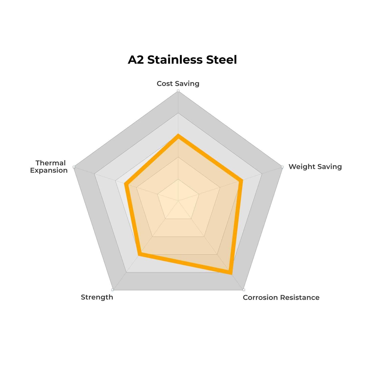 - A2 Stainless Steel, also known as 18-8 or 304 Stainless Steel.