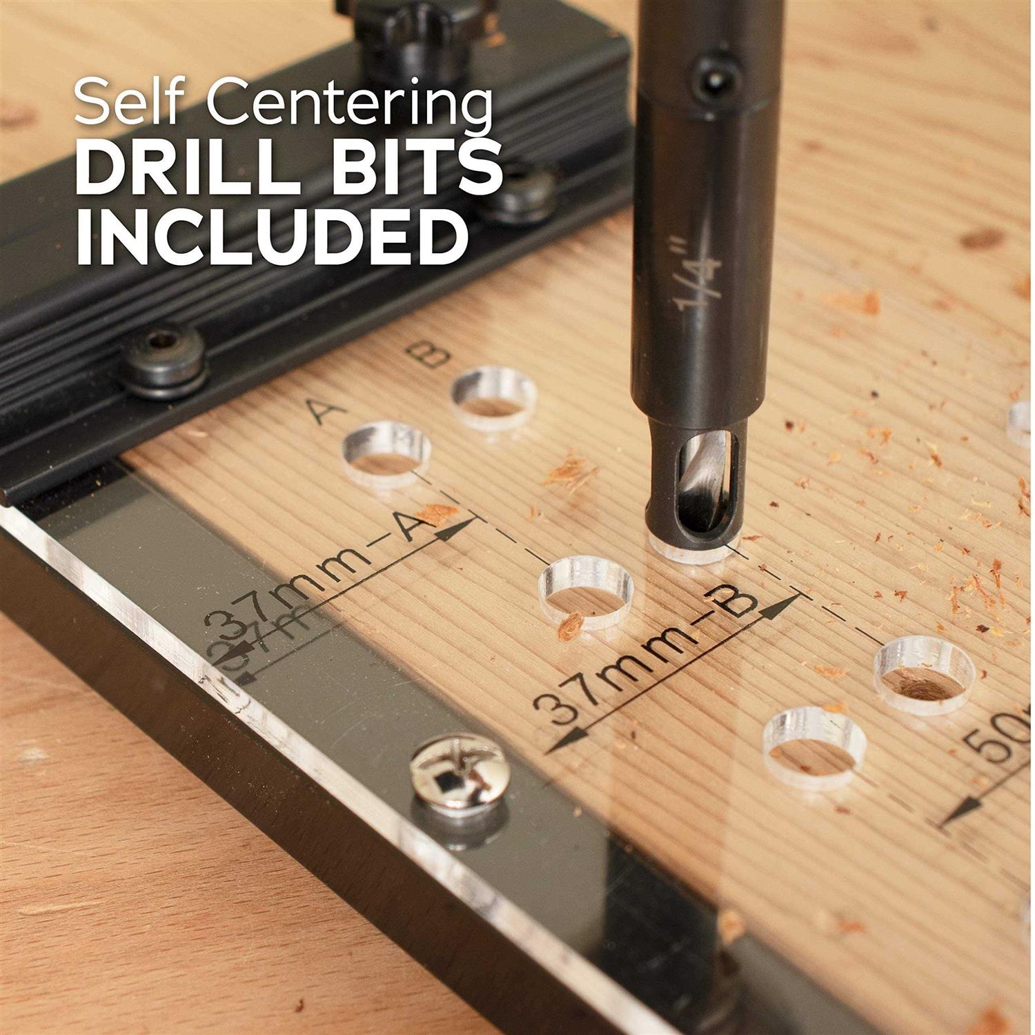 - Both the 1/4″ & 5mm self centering bits are included