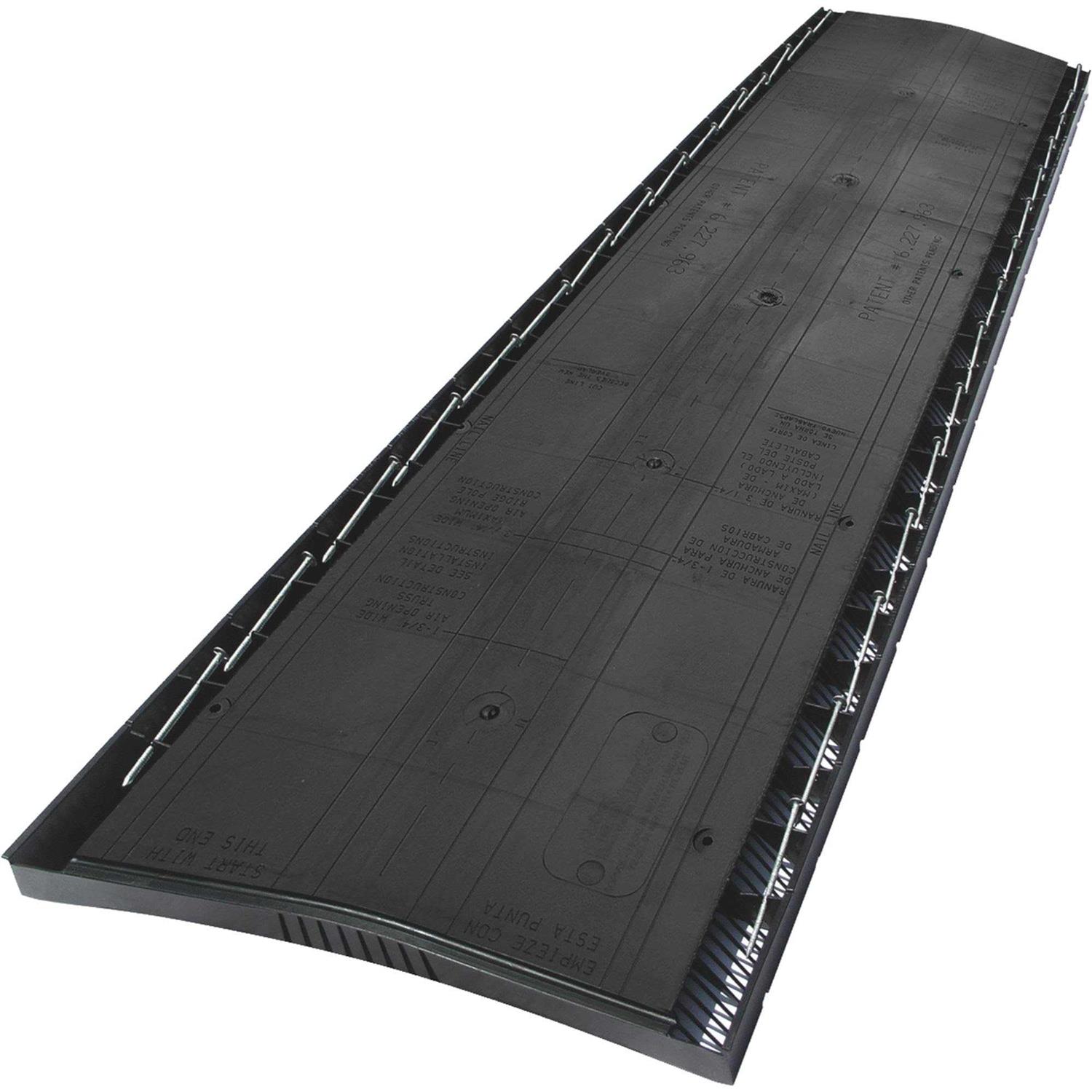 Features: Shingle-over to blend into ridge line. Allows heat/condensation to escape at most effective location. Watertight, passes 110-mph wind-driven rain test. External baffles help deflect wind/rain, no end caps needed. Prevents roof rot in attic or roof deck. Minimize peeling and extend the life of exterior and interior paint. Limit mold growth. Specially-designed louver spacing helps keep insects out. Energy-efficient, crush-resistant, with internal structural support for added durability. Extra-flexible hinge design for installation on 3: 12 to 16: 12 sloped roofs. 3″ ring shank nails included to insure proper fastening. Edge overhang for smooth, continuous coverage between sections.
