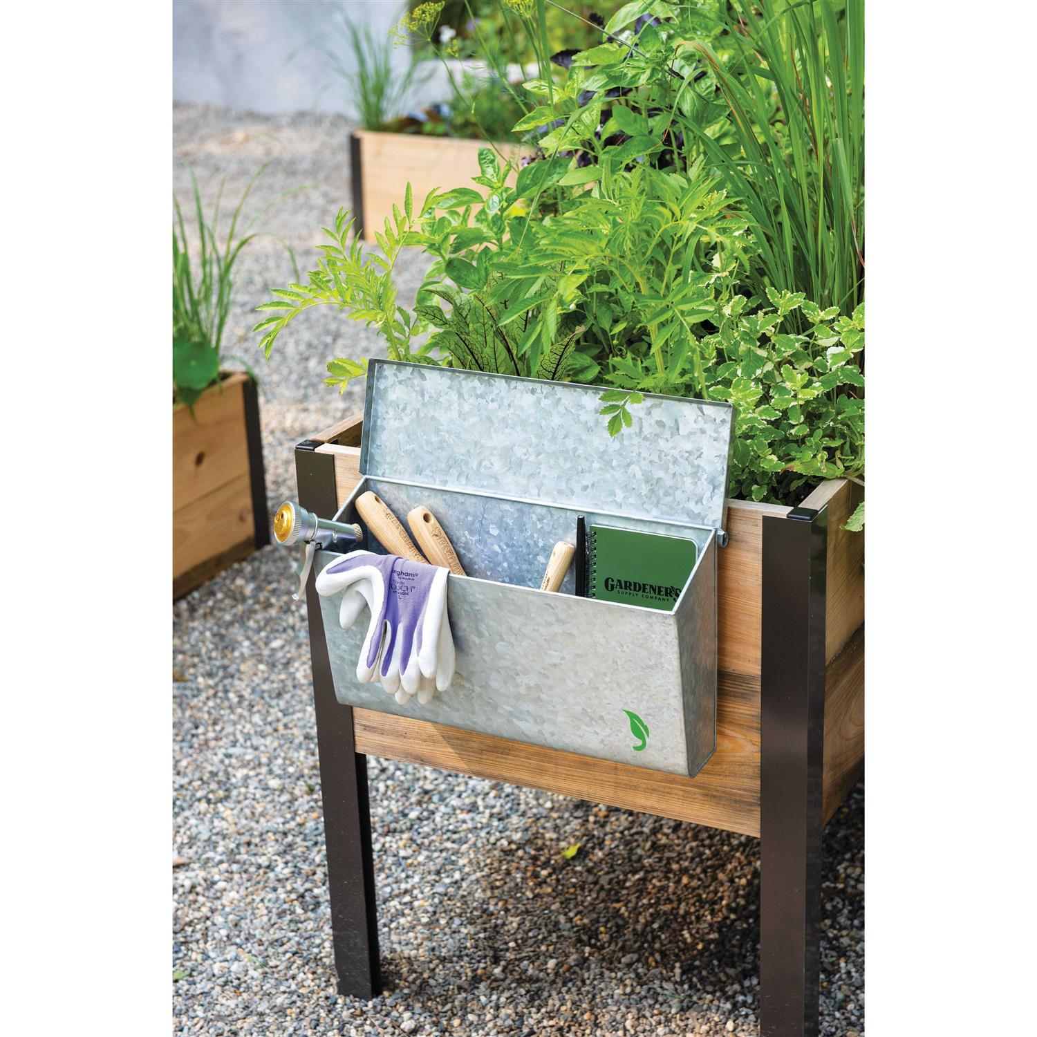 Keep your go-to gardening hand tools where it makes the most sense – right where you use them! Oversize storage box is made from galvanized steel for rust resistance and durability, and the smart design keeps water from getting in and ruining your tools.