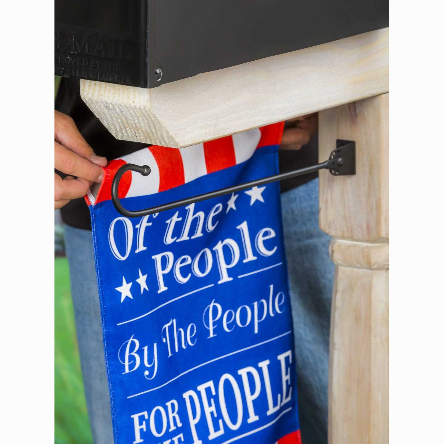 The Mailbox Garden Banner Hanger is designed to hold garden size flags by attaching it to a wooden mailbox post. But dont limit yourself to the mailbox. Install your banner hanger on a post in the garden at the patio or use multiple hangers so you hang all of your favorite banners at once. Measures 15-1/2 in. long and will fit 12-1/2 in. wide banners.