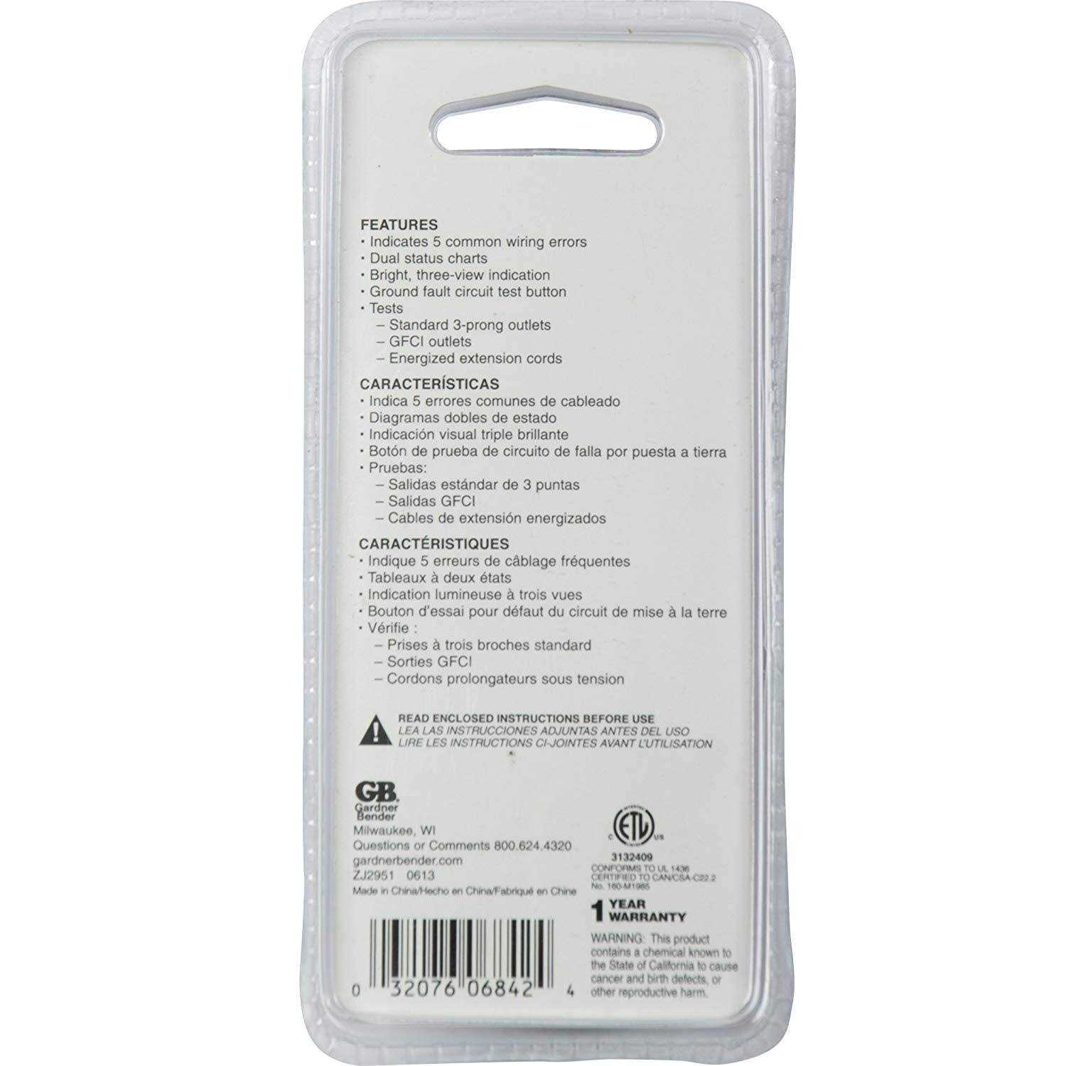 Gardner Bender Gfi-3501 Ground Fault Receptacle Tester & Circuit Analyzer, 110-125V AC, for GFCI / Standard / Extension Cords
