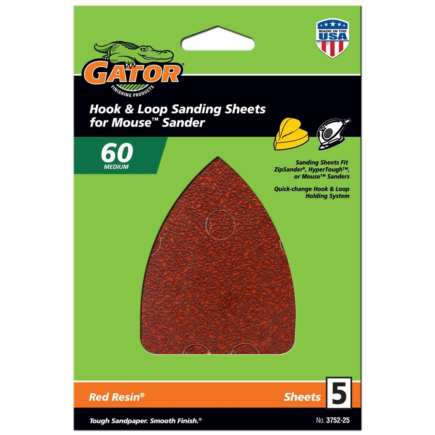 Gator 3754-25 120-Grit Hook & Loop Mouse Detail Sanding Sheets – 5 ct