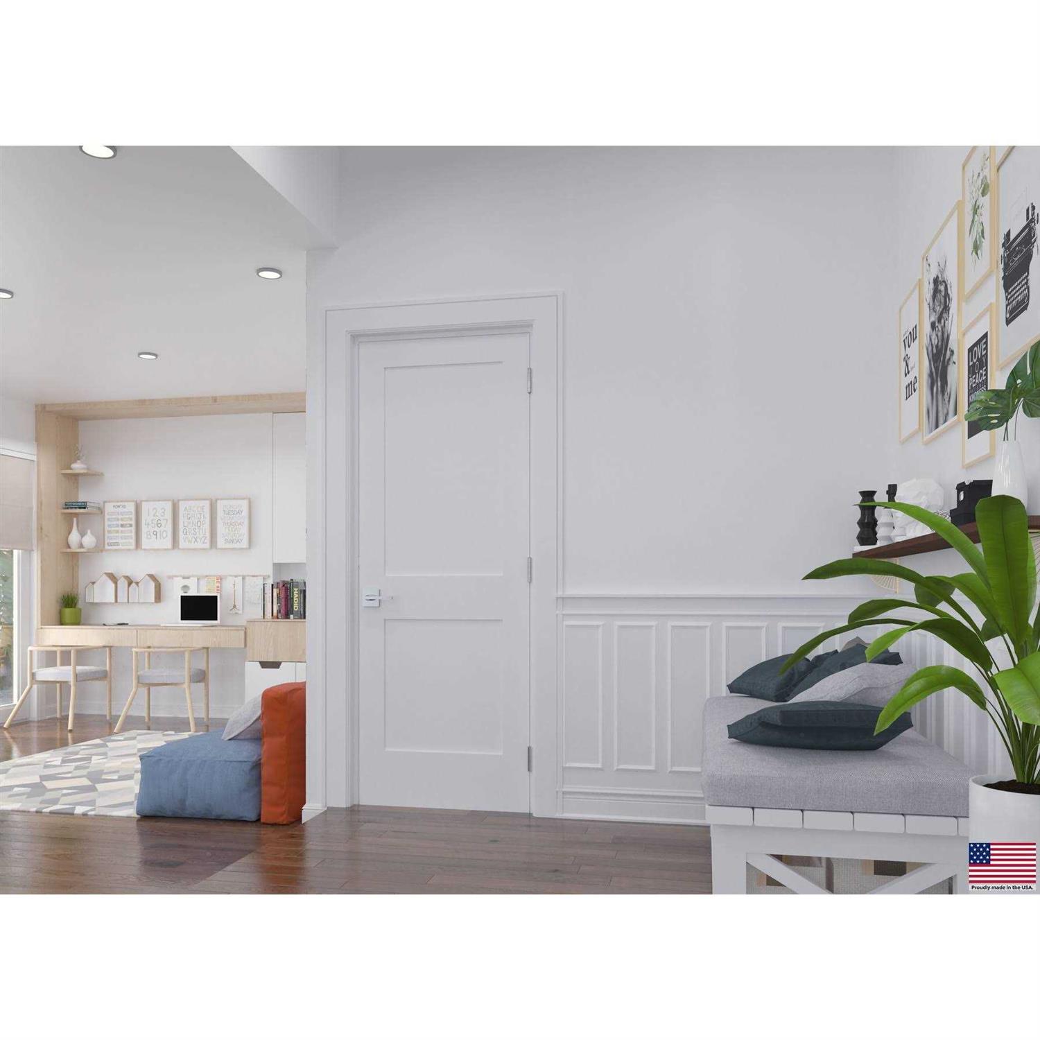 Enhance any room with the clean look of a RESO door. Expert solid-core construction offers reliable performance with superior sound reduction. Clean and simple Shaker-style single panel design complements any decor, from traditional to transitional to modern, and is compatible with your best interior design ideas. The smooth surface is fully prepared, primed, and ready to be painted without any extra time in the color of your preference to create a look you love. The true stile and rail construction provides durable quality, and you will be able to feel the difference in quality from the first touch.