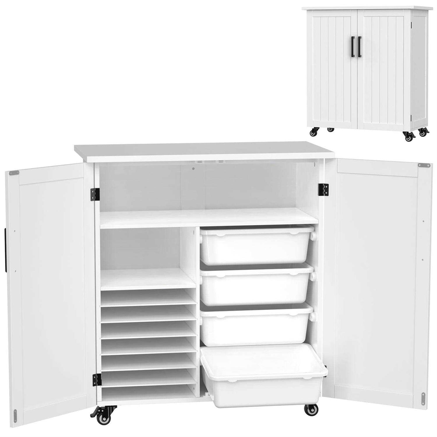 Gdlf Craft Cart Compatible with Cricut Machine, Rolling Cricut Cabinet with Storage 31.6 inchw x 15.8 inchd x 34.9 inchh, White