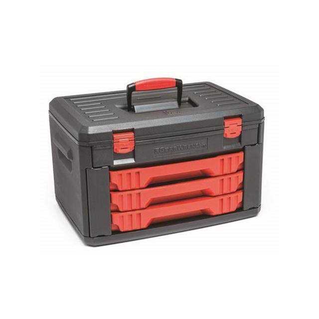 Includes 3-drawer storage box with independent sliding draws, side flaps to lock draws in place, a steel hinged lid and durable handle full polish chrome 1/4in, 3/8in and 1/2in standard sockets, and 1/4in and 3/8in deep sockets full polish chrome metric and sae combination wrenches with offset box end and surface drive technology to reduce fastener rounding 45-tooth full polish chrome quick release ratchets original allen brand hex keys knurled full polish chrome extensions magnetic bit driver with ergonomic dual material handle sockets feature surface drive technology to reduce fastener rounding meets or exceeds asme b107.1, B107. 5m, b107. 10, B107.6 Includes blow molded 3-drawer storage box full polish chrome sockets with large hard stamp size markings full polish chrome combination wrenches feature offset box end and surface drive technology to reduce fastener rounding 45 tooth full polish chrome quick-release ratchets the original allen brand hex keys knurled full polish chrome extensions magnetic bit driver with ergonomic dual material handle sockets feature surface drive technology to reduce fasteners rounding meets or exceeds asme b107.1, B107. 5m, b107. 10, B107.6.