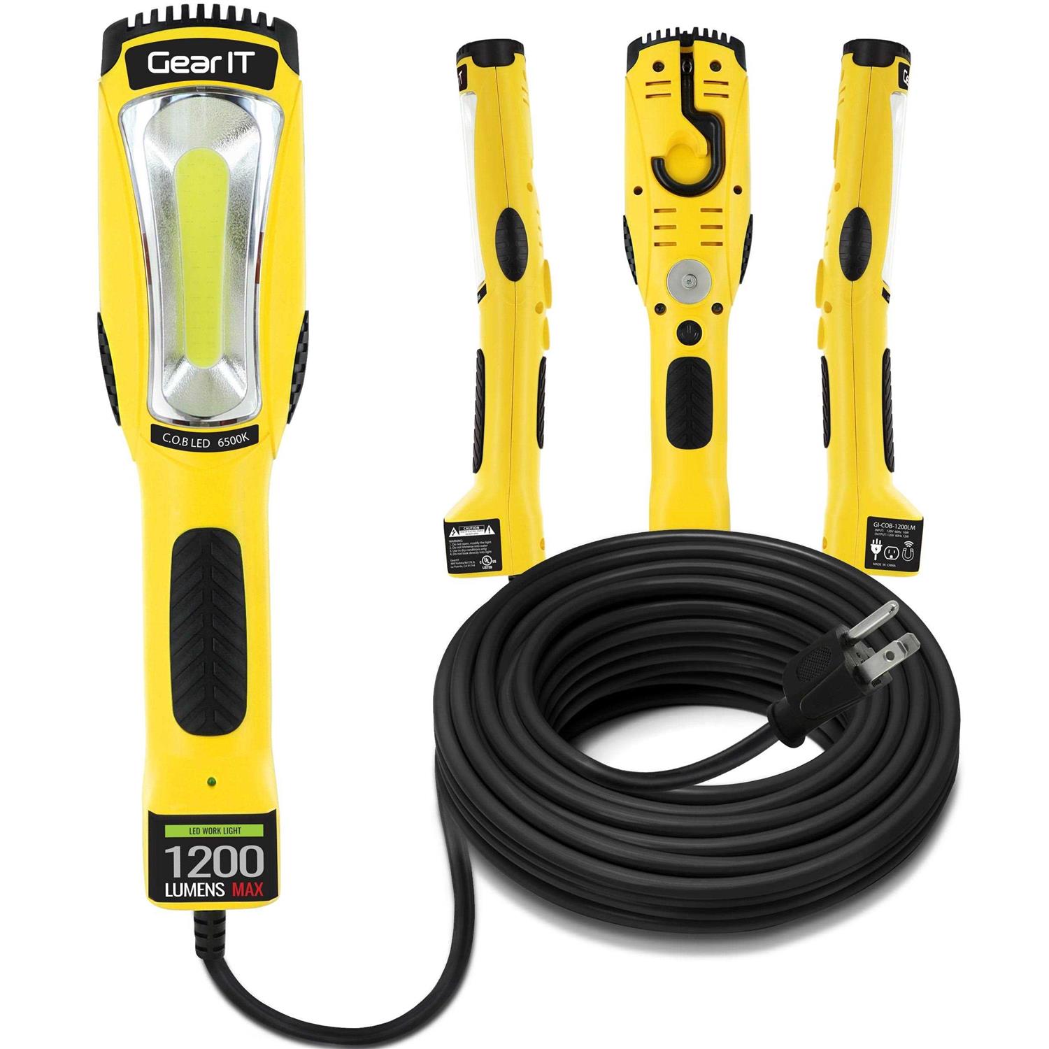GearIT LED Work Light (15 Feet) 1200 Lumen COB LED – 16 Gauge SJTW Indoor/Outdoor NEMA 5-15R Extension Cord – Handheld, Rotating Hanger, Magnetic Base