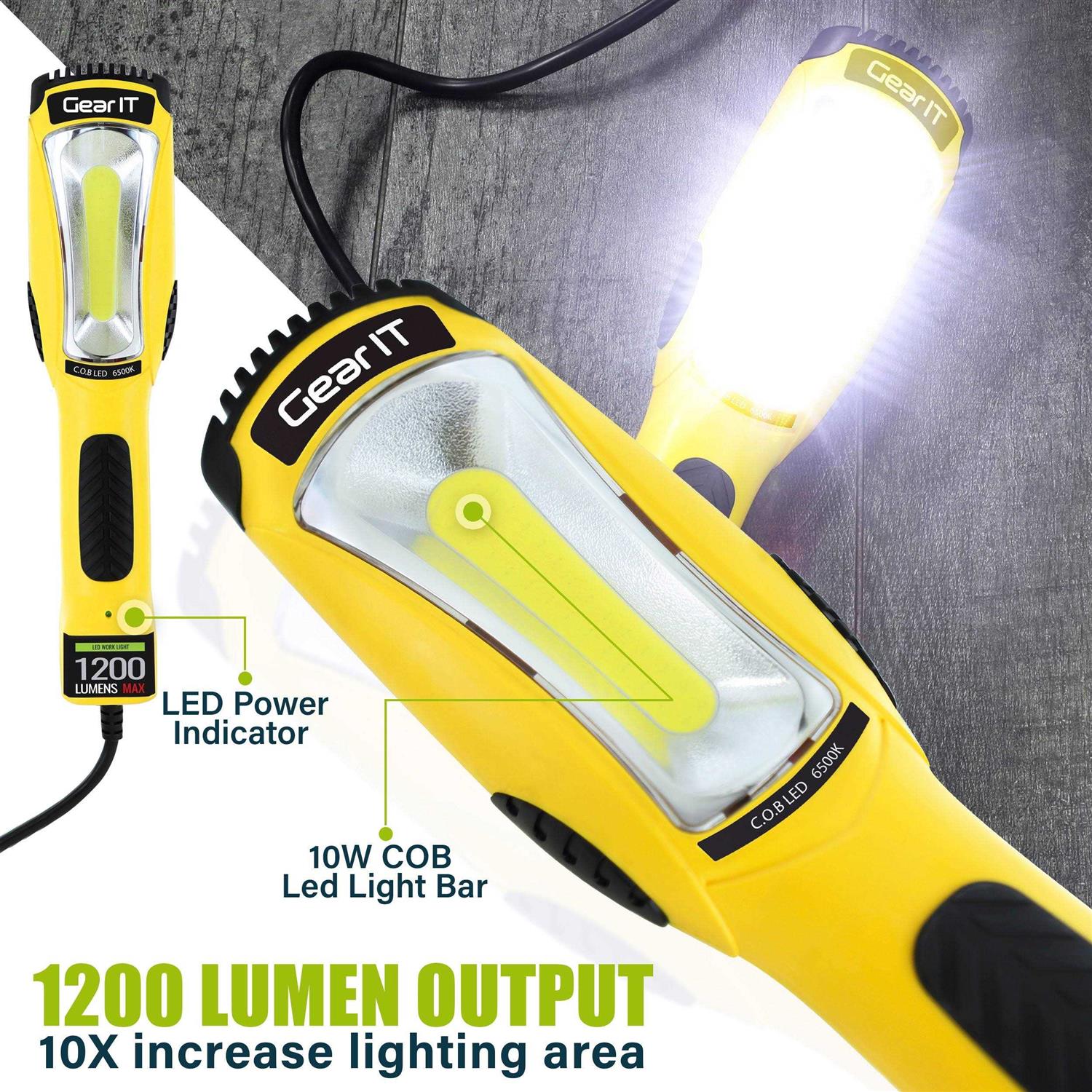 Gearit LED Work Light 1200 Lumen COB LED 16 Gauge Sjtw Indoor/Outdoor Nema 5-15r Extension Cord