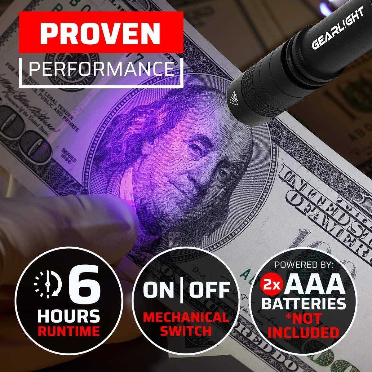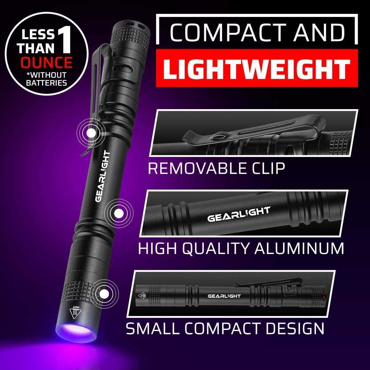 GearLight UV Black Light Flashlight S100 [2 Pack] – Mini Blacklight Ultraviolet Pen Lights for Leak and Hotel Inspection – Pet U