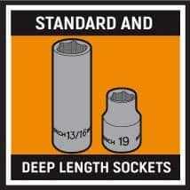 - Sockets feature off-corner loading design to reduce fastener rounding