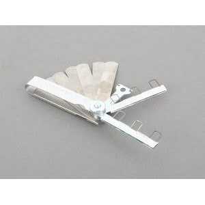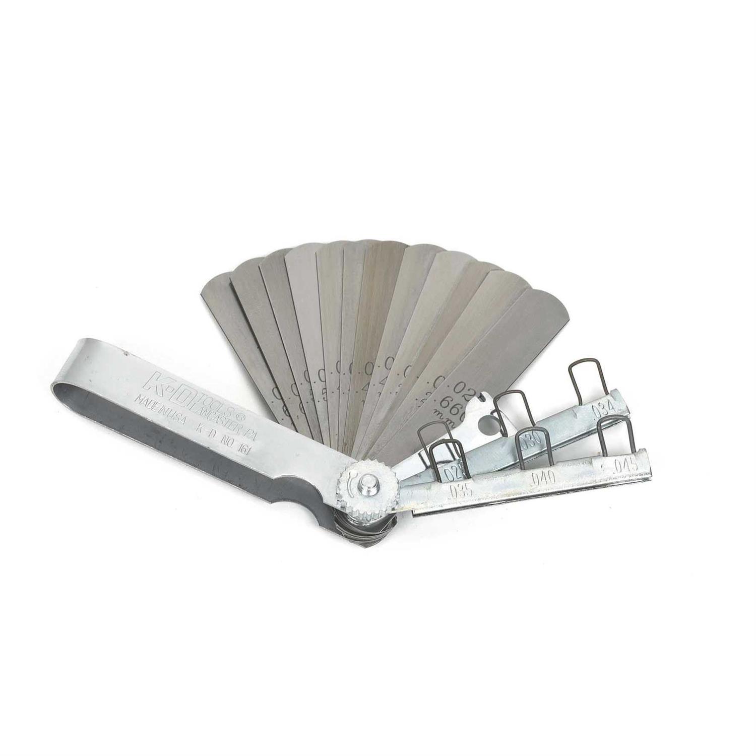 Use to set and measure spark plug gaps plus other ignition clearances from 0.2 to 0.2 (0.2 to 1.2mm). Six wire gauges cheque spark plug gaps and 12 straight blades cheque other clearances. It includes a double-ended electrode tool for easy adjustments. Blade Lengths: 3-5/16 long