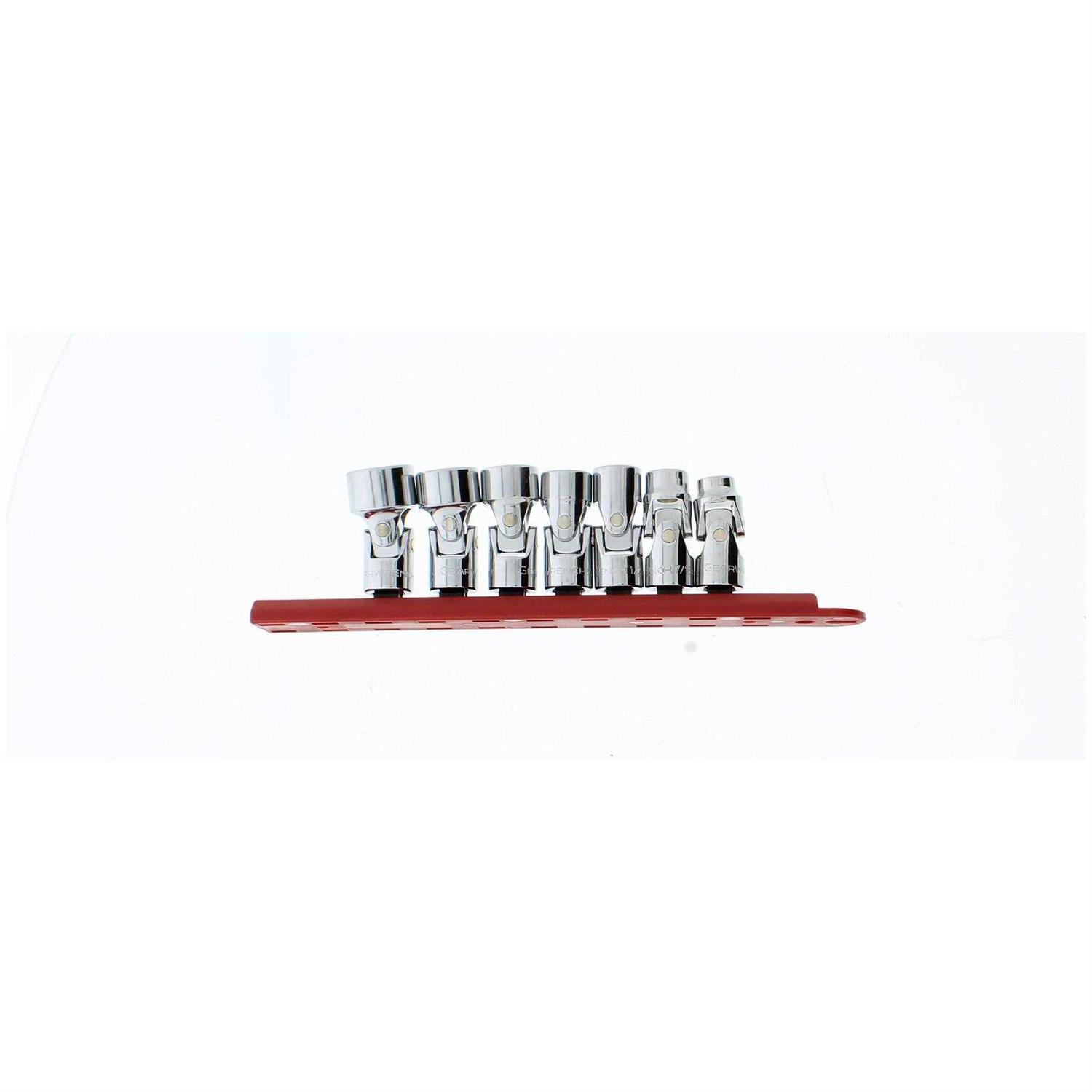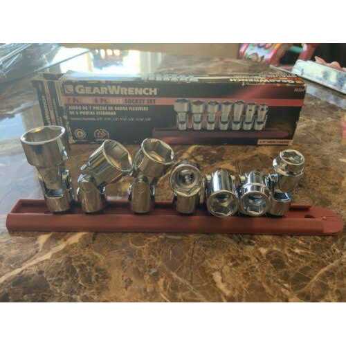 The GEARWRENCH 7 Piece 3/8″ Drive 6 Point SAE Flex Socket Set features our universal socket design that allows users greater angled access to hard-to-reach fasteners. Our off corner loading design reduces fastener rounding allowing fasteners to be reused. The set is stored on a socket rail for storage and organization.