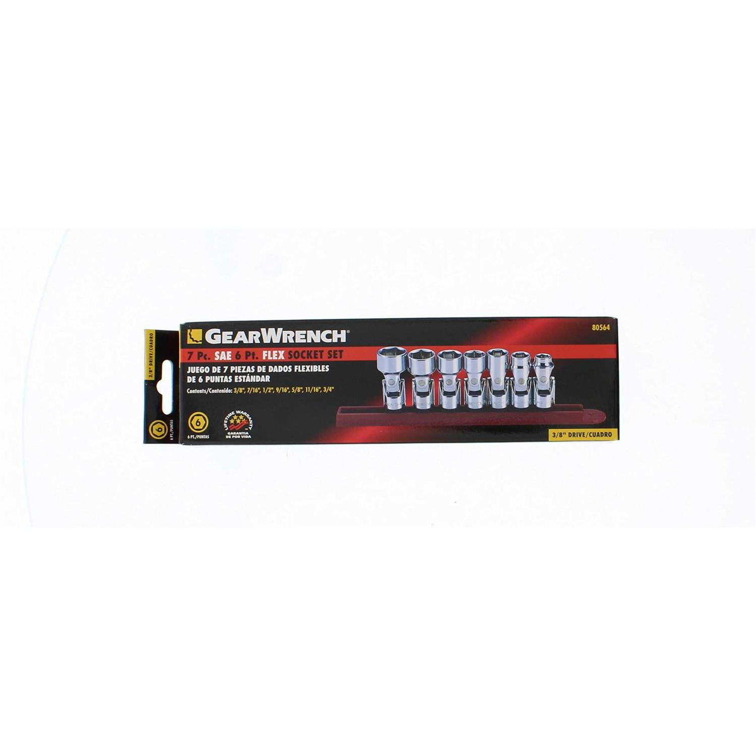 GearWrench 80564 7 Pc. 3/8 Drive 6 Point SAE Flex Socket Set
