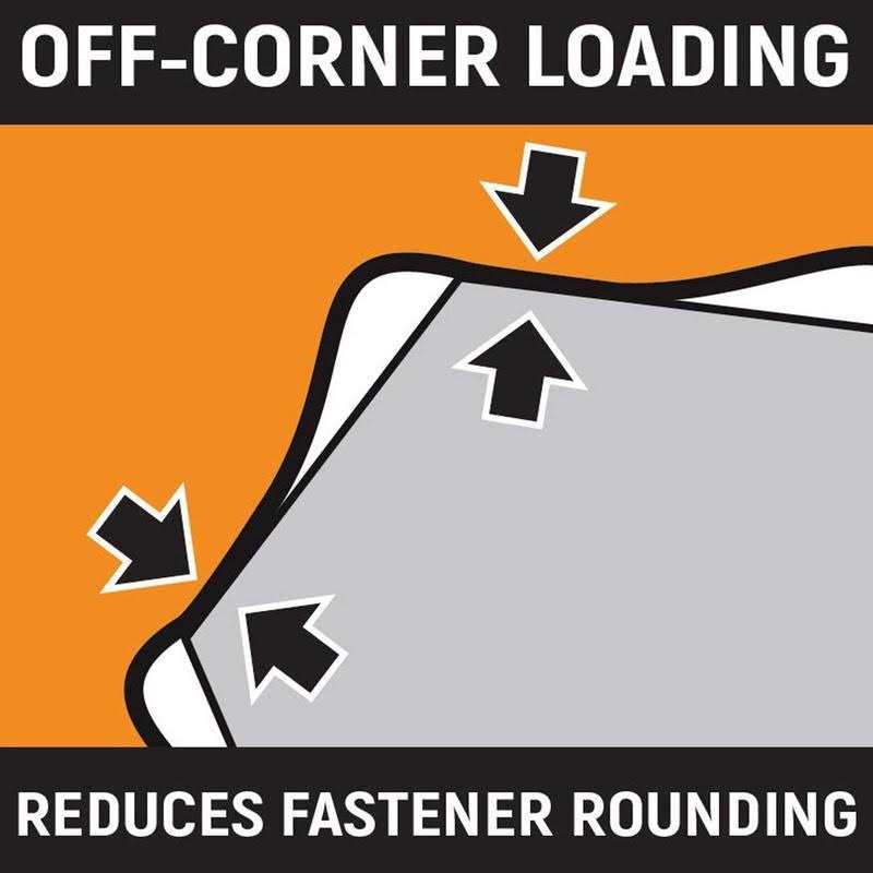 - Off-corner loading design on box end provides better grip and reduces fastener rounding