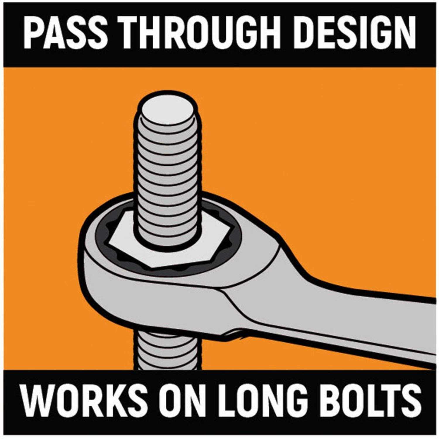 Ratcheting box end needs as little as 5 degrees to move a fastener vs. 30 degrees for standard box end wrenches. Surface Drive on box end reduces fastener rounding and provides a stronger grip on fasteners. Delivers ratcheting productivity to very large fasteners and saves time and energy. Long pattern wrenches provide excellent leverage and power. Heavy duty to withstand the most challenging work environment This wrench delivers ratcheting productivity to very large fasteners unlike a traditional combination wrench that is cumbersome and difficult to reset on the fastener.