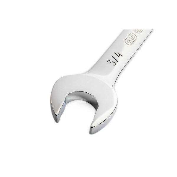 GEARWRENCH 90-tooth ratcheting wrench swing arc of just 4 turns fasteners in extremely tight spaces. Longer, wider beam delivers improved reach, leverage, and comfort. Large color-coded SAE/metric markings make size identification easy.