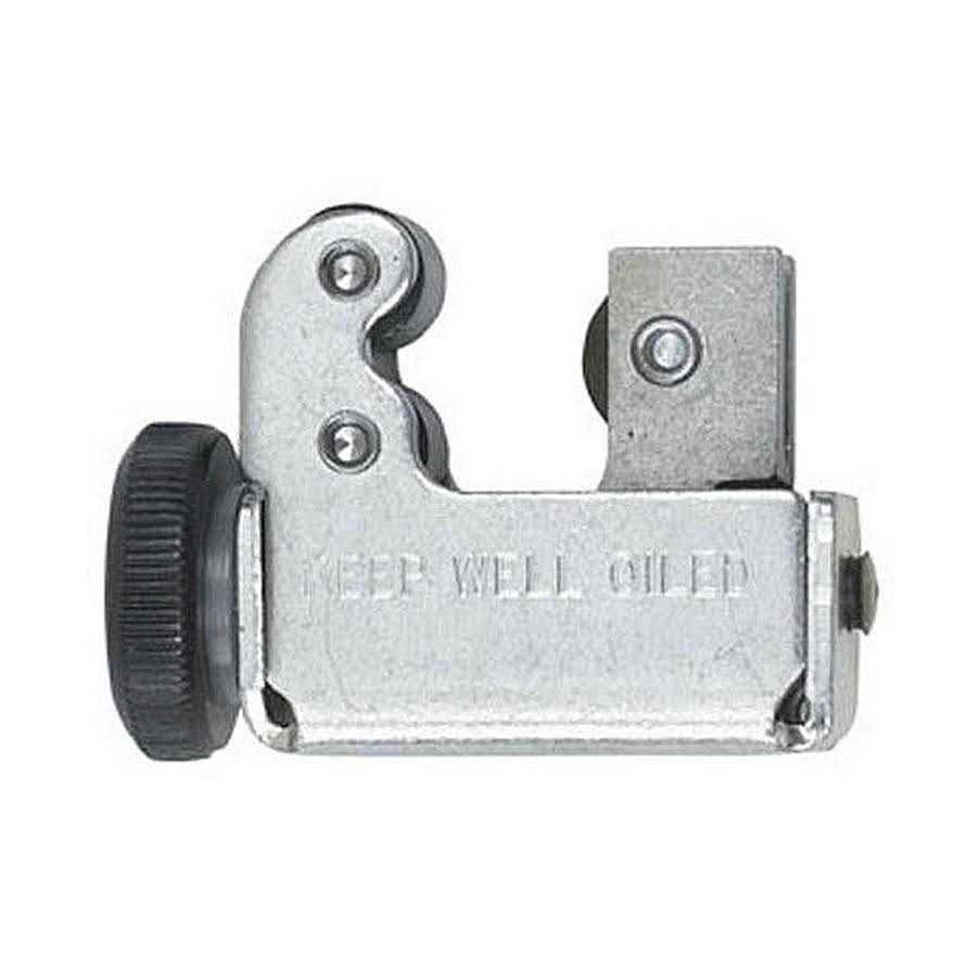 Cut thin-wall steel, plastic, copper and brass tubing from 1/8 to 5/8_ in diameter. Two rollers provide burr-free cut. Small size allows cutter to fit into tight areas.