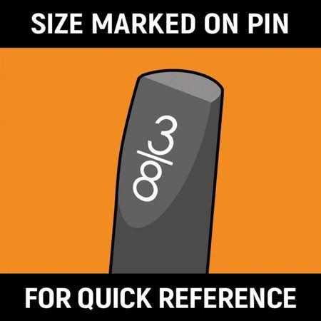 - Quick to read size markers on the top of each pin