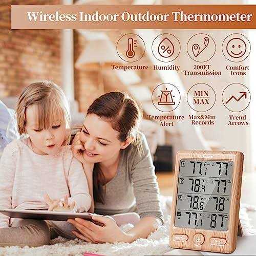 Geevon Indoor Outdoor Thermometer Wireless with 3 Remote Sensors