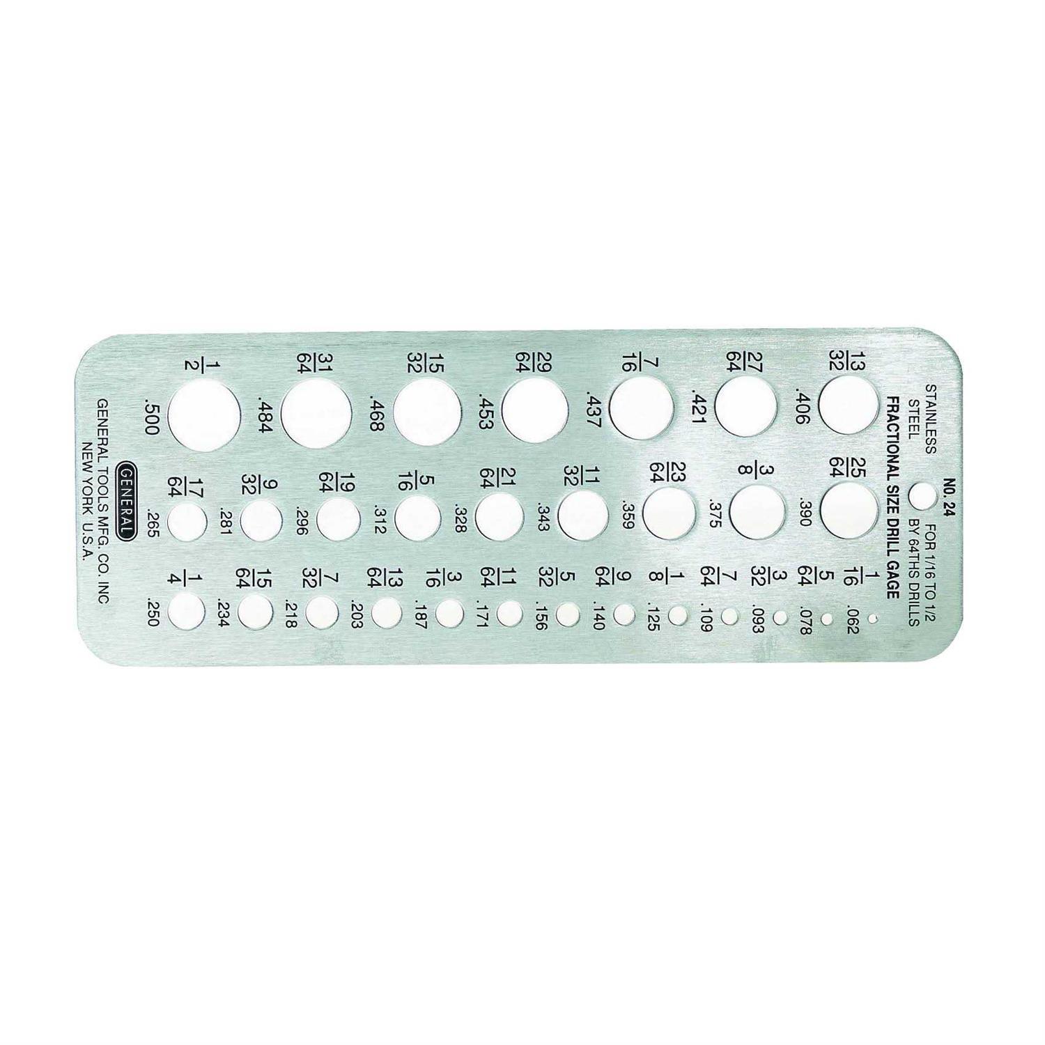 - Heavy gage no rust stainless steel gage conveniently identifies drill bit sizes
