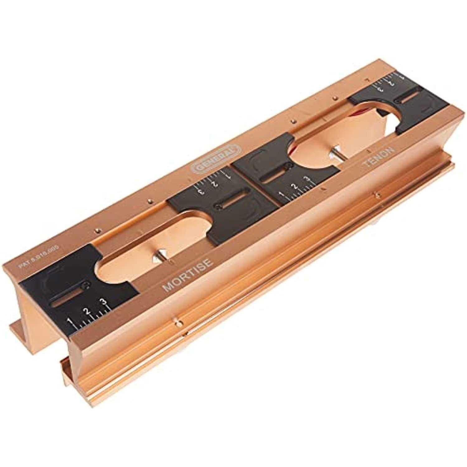 General Tools has grown to become the recognized industry leader for specialty hand tools and instruments. This trailblazing tool provides a quick and easy all-in-1 solution to cut both a matching mortise and Tenon with a single inexpensive jig. The mortise and Tenon jig is ready to use right out-of-the-box to produce 1/4 inch mortise and Tenon joints for cabinets furniture and frames. Included are the bushings for also producing 3/8 inch and 1/2 inch joints. Using a plunge router with the jig woodworkers can cut fully aligned mortises and Tenons ranging from 1/4 inch to 1/2 inch W and from 1 inch to 3 inch long. The unit can be mounted directly on a workbench or onto a board that can be clamped in a vise or to a bench. The mortise and Tenon joint has been used for thousands of years but not until now did someone figure out a way to provide a quick and easy all-in-1 solution to cut both a matching mortise and Tenon with a single inexpensive jig. The unit can easily handle stock ranging from 1/2 inch to 1-1/2 inch T and can cut multiple mortises in a single long piece.
