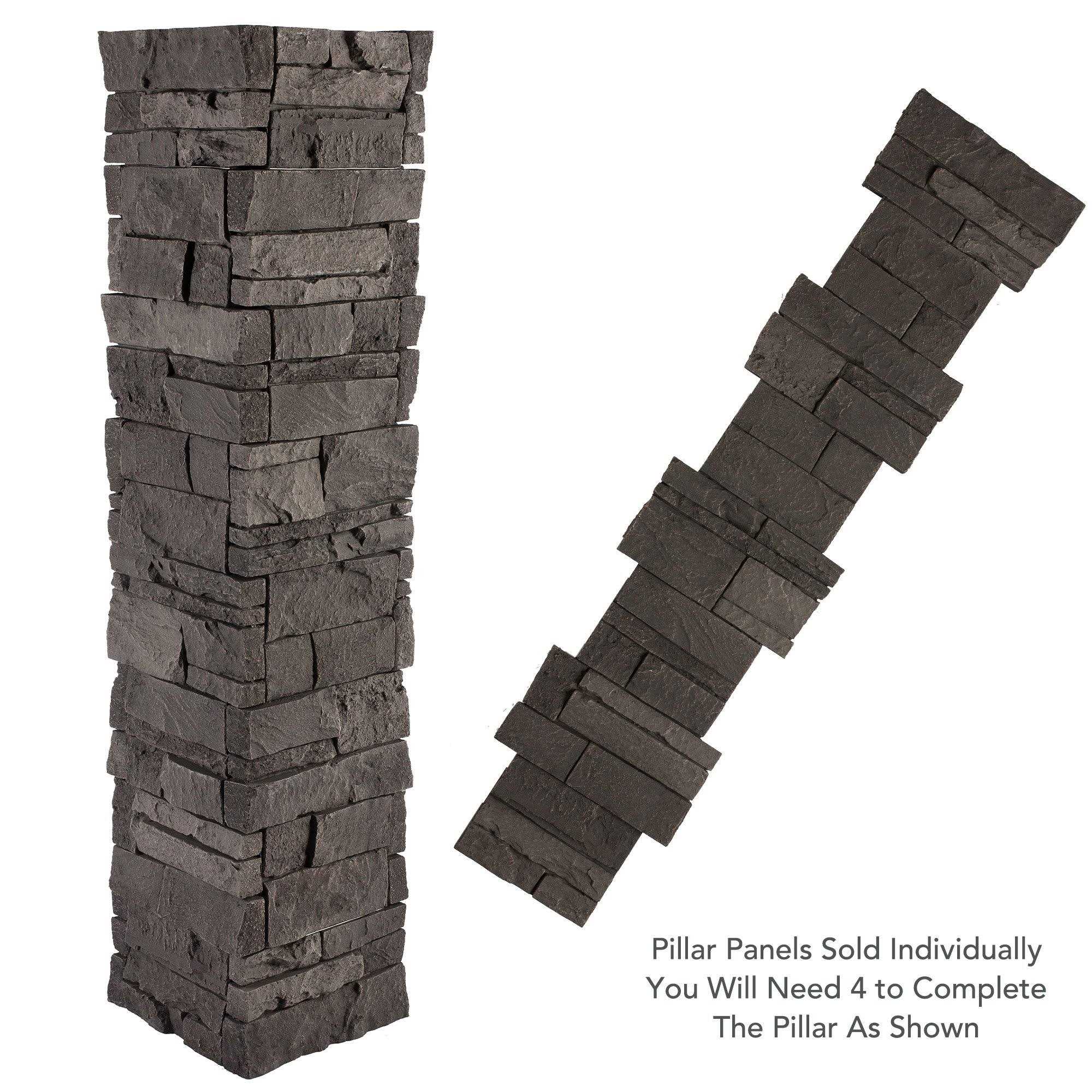 DescriptionThe GenStone Pillar Panel provides an easy-to-install solution that will give you the look of stacked stone from the box to the wall in minutes. The Pillar Panels are sold individually because the panels can be stacked on top of one another for taller posts or cut down to accommodate smaller posts. There is now no need for a mason or the hassle of wire mesh and grout since GenStone Pillar Panels simply screw to the post. The pillar panel system is designed to cover an 8 inch square post. Smaller posts can be trimmed out with furring strips to 8 inches x 8 inches square.