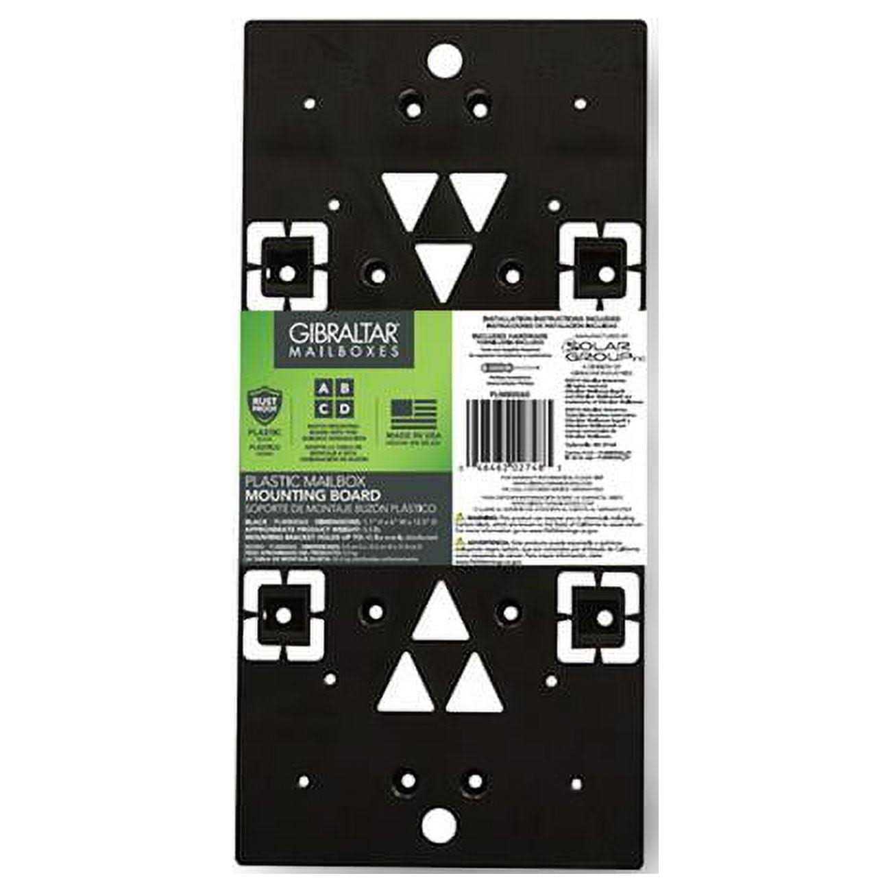 The Architectural Mailbox Mounting Bracket makes installing a mailbox easier than ever. This mailbox mounting bracket is compatible with all Gibraltar and Architectural Mailbox Posts with Match Code designation A, B, C, or D. Made from durable polypropylene plastic that will never rust, the mounting board has an ultraviolet inhibitor to extend its service life. Mounting hardware and easy to follow instructions are included for your convenience. Constructed from durable, rust-proof polypropylene Mounts to a 4 x 4 wooden or plastic post Adaptable to fit various size post mount mailboxes, perfect fit for Gibraltar or Architectural mailboxes and posts with match code designation A, B, C, or D Mounting hardware included Gibraltar Mailboxes Plastic Universal Mailbox Mounting Board in Black features a durable molded construction. Includes hardware for easy installation.