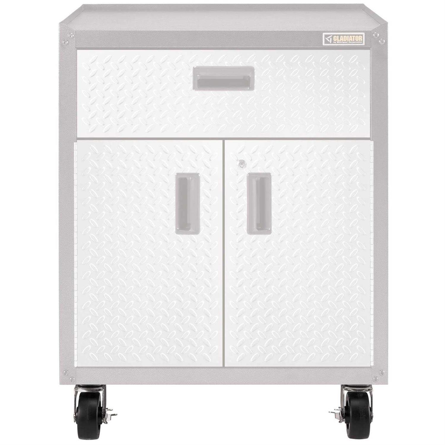 The Ready-to-Assemble Modular GearBox Caster Kit offers you functionality and movable storage for your RTA Modular GearBoxes Front casters lock with a simple step, making it possible to solidly hold the unit in place. The swiveling rear casters make the unit easy to move. ONLY to be used with Gladiator RTA Base Cabinets.