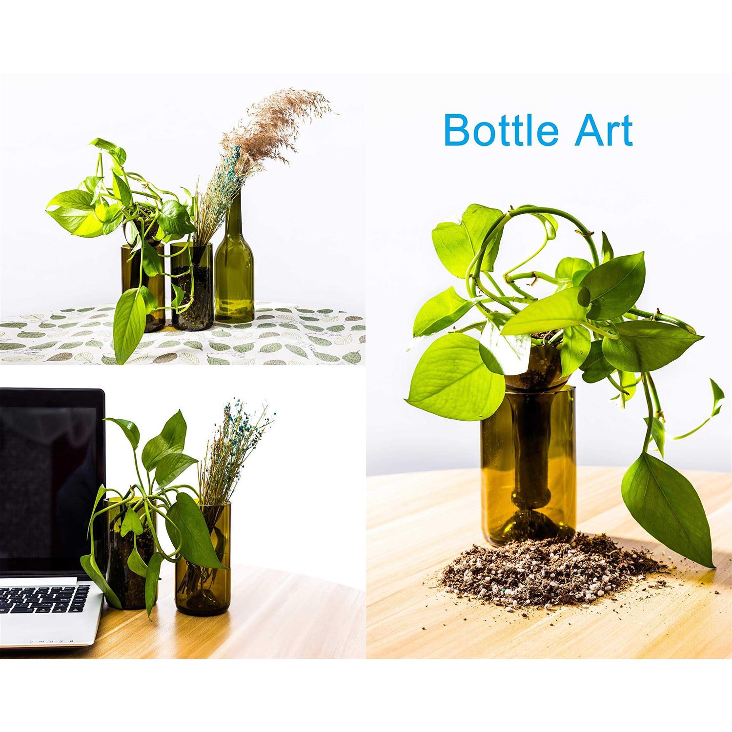 Glass Cutting Tools by Camdios. Details: No more hesitation! Try it now! Absolute Professional Bottle Cutting Kits:More stable than a conventional bottle cutter due to its Design includes 5 support wheels created specifically, There is a movable position block at the baffle for a more precise cutting, The length of the cutting blade to the support plate can be adjusted 3″-13″. The blade can be adjusted to cut most bottle shapes – round, oval, and even square (square bottles need a bit of practice) – and bottle necks.99) to help get you started. Join BOTTLE ART CLUB, you can find thousands of designs and share your creativity with other creators.