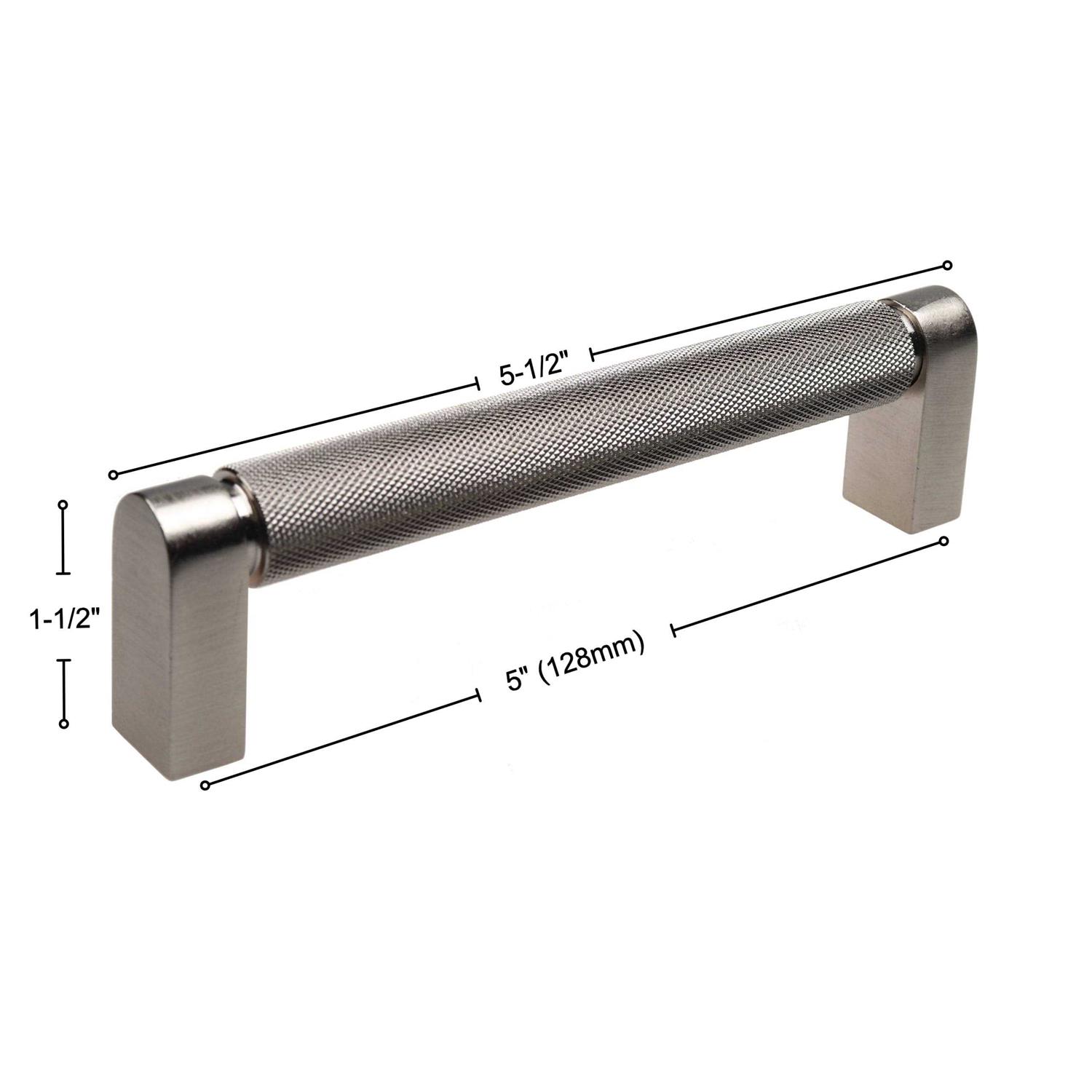 This textured heavy-weight knurled bar pull features a complex diamond pattern that will add an up-to-date and unique look in your kitchen, laundry room or bath. The knurled design gives you an easy-to-grip handle. Matching knobs are also available.