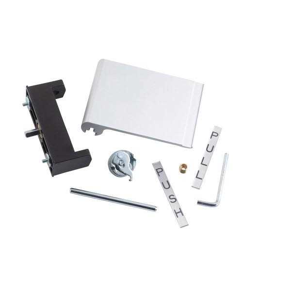 - Paddle arm, operating housing, binder posts, cam plug, self adhesive decals and mounting hardware included