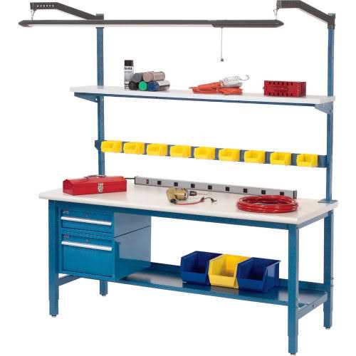 Features High pressure plastic laminate work surface over a particle board core. Rounded front safety edge bench top helps to provide more comfort for the worker. Plastic work surface is easy to clean and durable for most applications. 1 5/8″ thick.