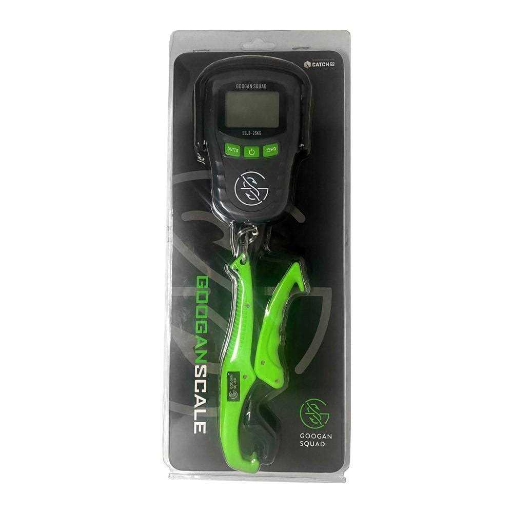Bring your prize to the finish line with the Googan Squad Digital Scale. The built-in lip-gripper keeps fish safe and secure during the handling process. Easily read and record your catch with the bright digital display. The Googan Squad Scale can measure fish weighing up to 55lbs making it a great tool for anglers targeting bass, catfish, stripers, and more. AAA Batteries Included. Non-Slip Grip. 55lb Max Capacity. Googan Green Finish.