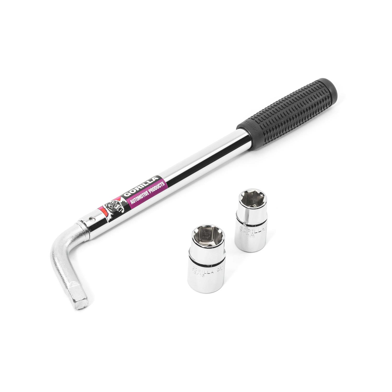 The Gorilla Power Wrenchs 21″ telescoping handle provides the leverage needed to remove even the tightest lug nuts with ease. Includes dual sockets that fit virtually all standard. Original Equipment lug nuts. 17mm, 19mm (3/4″), 21mm (13/16″), 23mm (7/8″) socket sizes included.