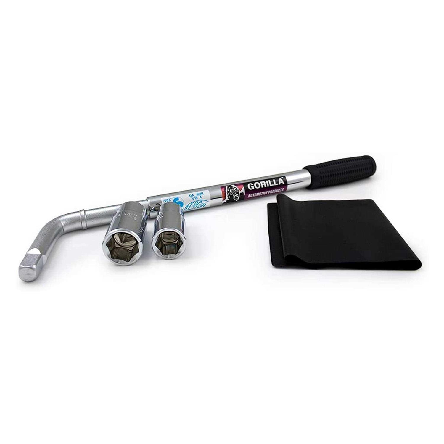 Telescoping handle extends to 21 inches for maximum leverage. Compacts to 14 inches for easy storage. Hardened steel and precision construction. A perfect replacement for your standard lug wrench. Polybag included for convenient storage. The Gorilla Power Wrench’s 21″ telescoping handle provides the leverage needed to remove even the tightest lug nuts with ease. Includes dual sockets that fit virtually all standard Original Equipment lug nuts. 17mm, 19mm(3/4″), 21mm(13/16″), 23mm(7/8″) socket sizes included.