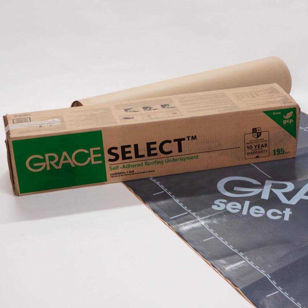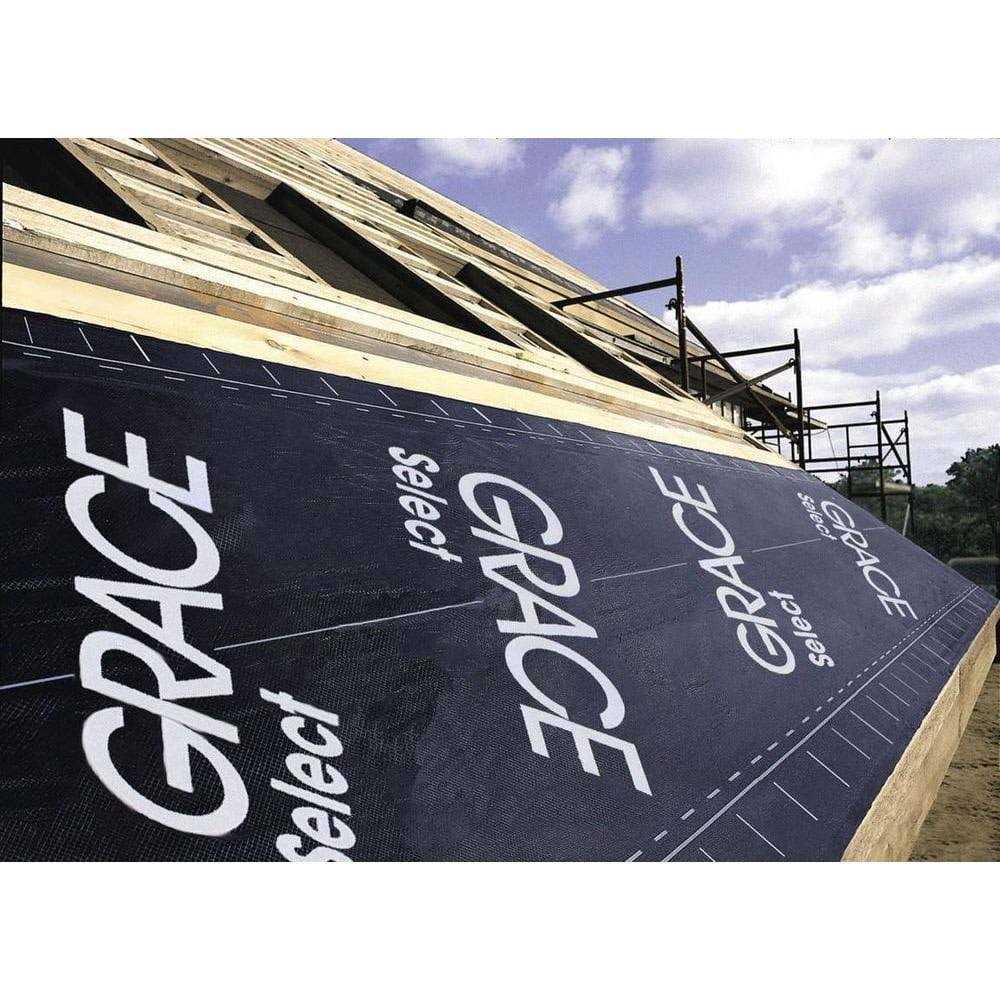 Up to 30 day UV exposure 25 mils thick The Grace Select is a self-adhered underlayment that is thin and light weight, making it easier to apply. It offers premium protection against severe climatic conditions such as wind, rain and the build up of ice dams and is recommended to be used under most roofing materials and in a range of slopes including the very lowest and highest slope designs. Grace Select has a quick foldless release paper, will not crack or dry out and is slip-resistant. This underlayment also has a rubberized asphalt layer that seals around roofing nails, allowing for a tight seal and added protection from the environmental changes.