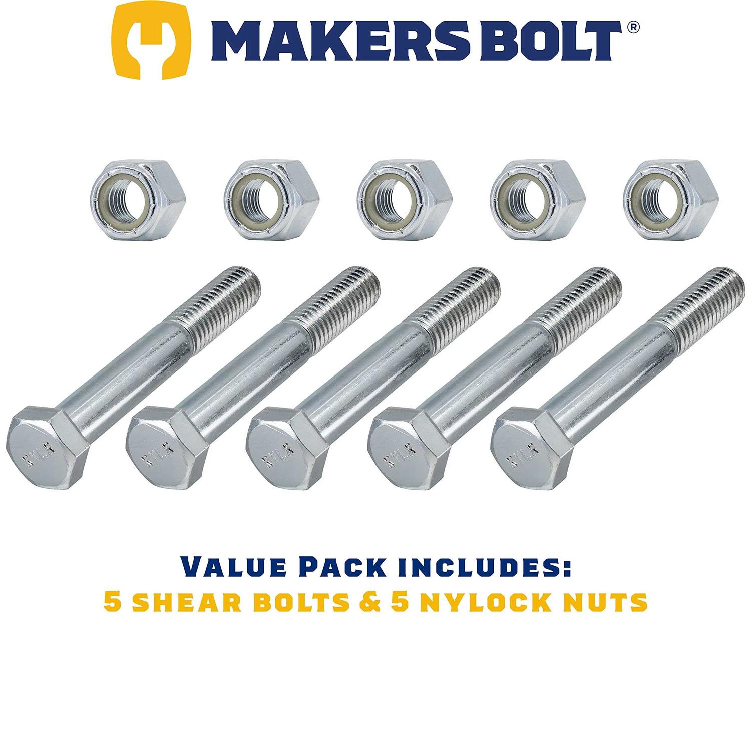 - Kit includes 5 shear bolts and 5 nylon locknuts.