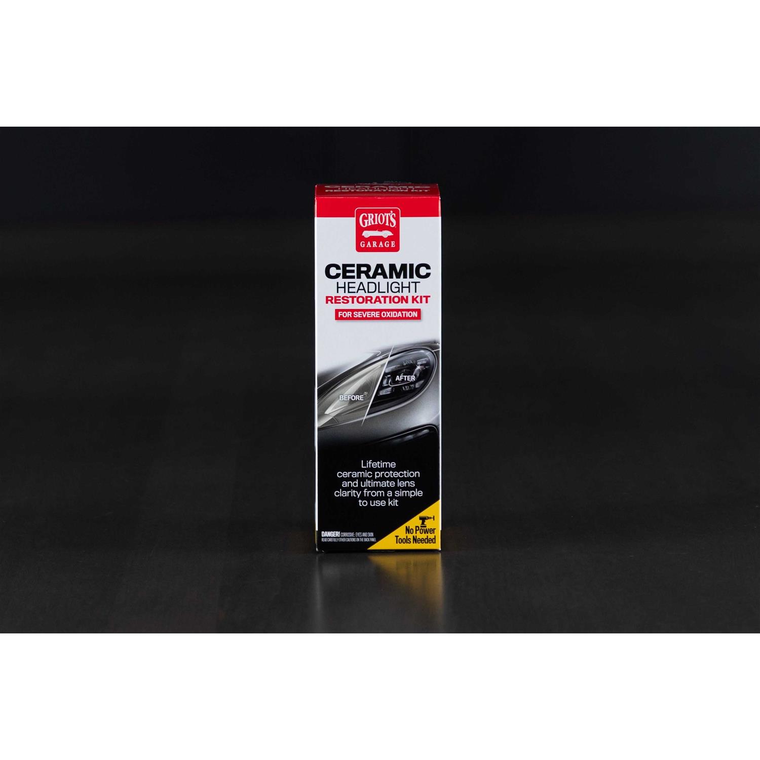 Our Severe Headlight Restoration Kit features a pair of proprietary oxidation removing wipes, a comfortable foam contour grip and a selection of high quality abrasives that don’t require power tools to rid your lens of its failed factory coating. Kit includes 2 Ceramic Headlight Coating Wipes, comfortable Contour Grip Applicator, foam-backed sanding discs (2x 1000 grit, 1x 2000 grit, 1x 3000 grit), 2 Oxidation Remover Wipes, and 2 protective nitrile gloves. Our Ceramic Headlight Coating powered by Cerakote Ceramics is the only ceramic headlight coating on the market and is guaranteed to last for life. Lifetime Ceramic Headlight coating prevents future lens failure Complete kit is easy to use and requires no power tools Kit includes everything you need to restore severely oxidized and yellowed headlight lenses About Griots Garage Since 1990 Griot’s Garage developed, manufactured, and bottled liquid car care products in a U.S. manufacturing and distribution center, giving Griot’s Garage total quality control over our washes, polishes, and waxes. Griot’s Garage towels, cloths, tools, buffing machines, garage gear, and accessories are designed by Griot’s to meet their high standards for perfection and quality.