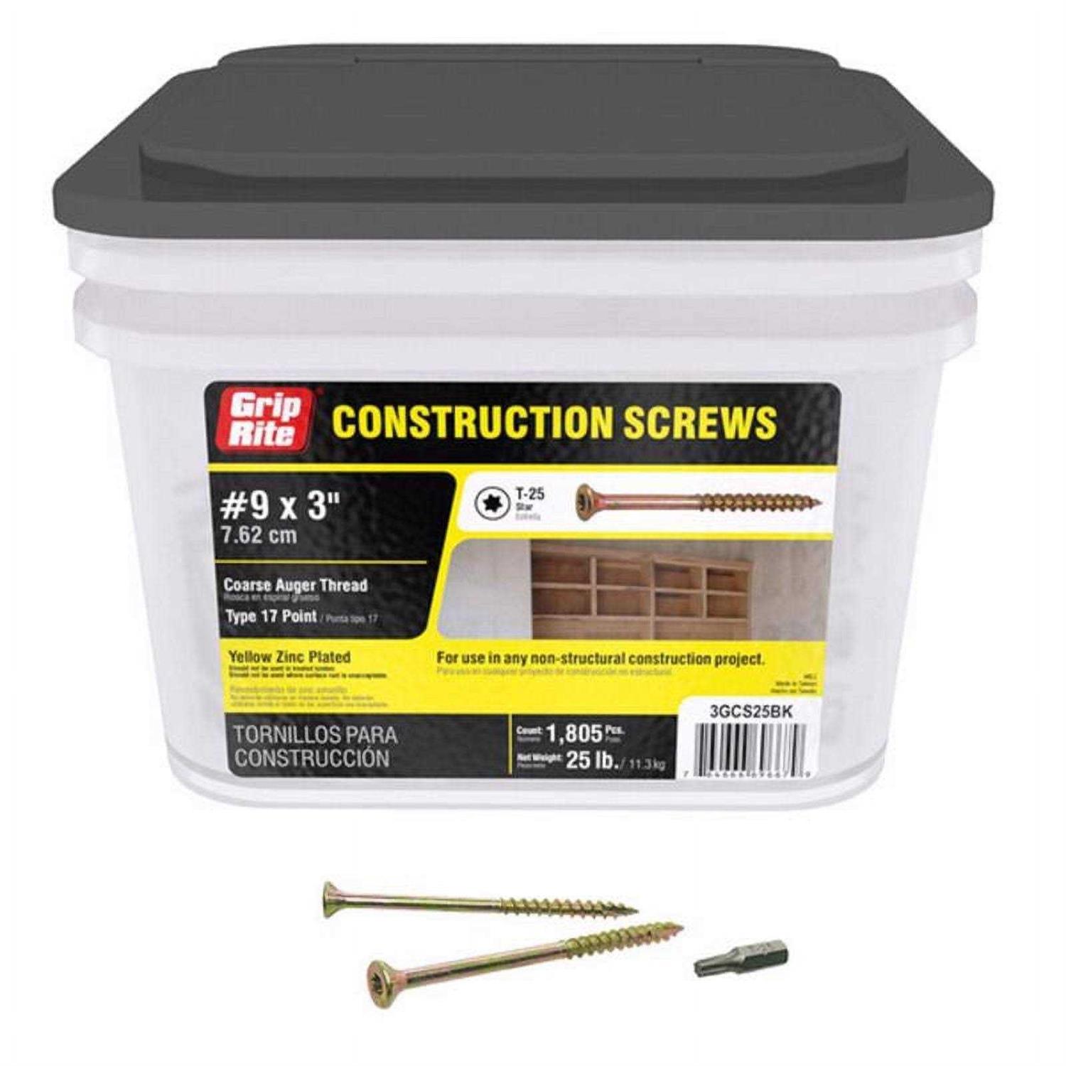 Grip-Rite 3GCS25BK 3 in. 25 lbs No.9 Star Phillips Bugle-Head Construction Screw