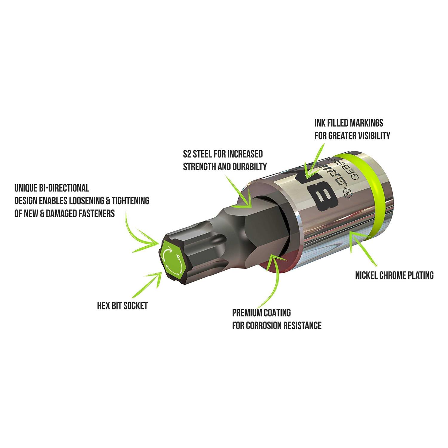 The GripEdge GE14STSRPT RPT Hex Driver Set (Rounding Prevention Technology) will completely replace your traditional Hex bits. Use them the first time, every time, to prevent damage from happening. In most cases, if you come across an already stripped or damaged Hex fastener, the RPT Hex bit can grip and remove them without the need for additional tools. RPT (Rounding Protection Technology) Provides up to 50% more torque on new fasteners Replaces standard hex tools RPT Provides up to 400% more torque on damaged fasteners Prevents rounding of fasteners Ink filled size markings for greater visibility Bi-Directional Design enables loosening and tightening of new and damaged fasteners Sizes Included – 4, 5, 6, 7, 8, 9, 10MM