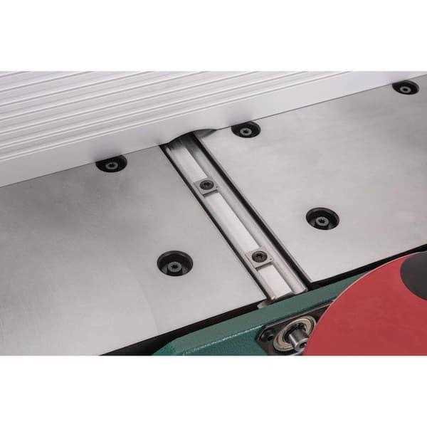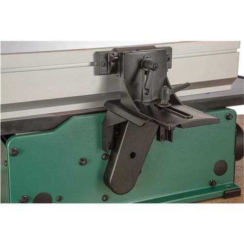 The G0947 Benchtop Jointer has as 8 in. cutterhead providing the same capacity as a typical floor model-style jointer, without taking up all the floorspace. The compact size makes it easy to move between job sites and is easy to store. The spiral-type cutterhead provides smoother finishes, quieter operation, and less maintenance compared to straight-knife cutterheads. The cutting edges of the 16 high-speed steel (HSS) inserts sit perpendicular to the workpiece. Each 2-sided insert can each be rotated once to expose a new sharp edge. HSS has been heat treated for hardness and wear resistance, which keeps a sharp edge longer than other carbon steels. The two-sided T32739 Replacement Carbide Inserts are available and sold in packs of ten. The overall size of the inserts making contact with the lumber reduces noise due to a smaller pattern of air being pushed by the cutterhead. The sawdust created by this machine is then finer which is less likely to create clogged dust lines. The 1-1/2 HP motor is bigger than in. traditional in. 1 HP motor options from other brands. The bars extend the overall table size from 34 in. to 52 in. and can be locked by-hand at any point in between to support the workpiece.