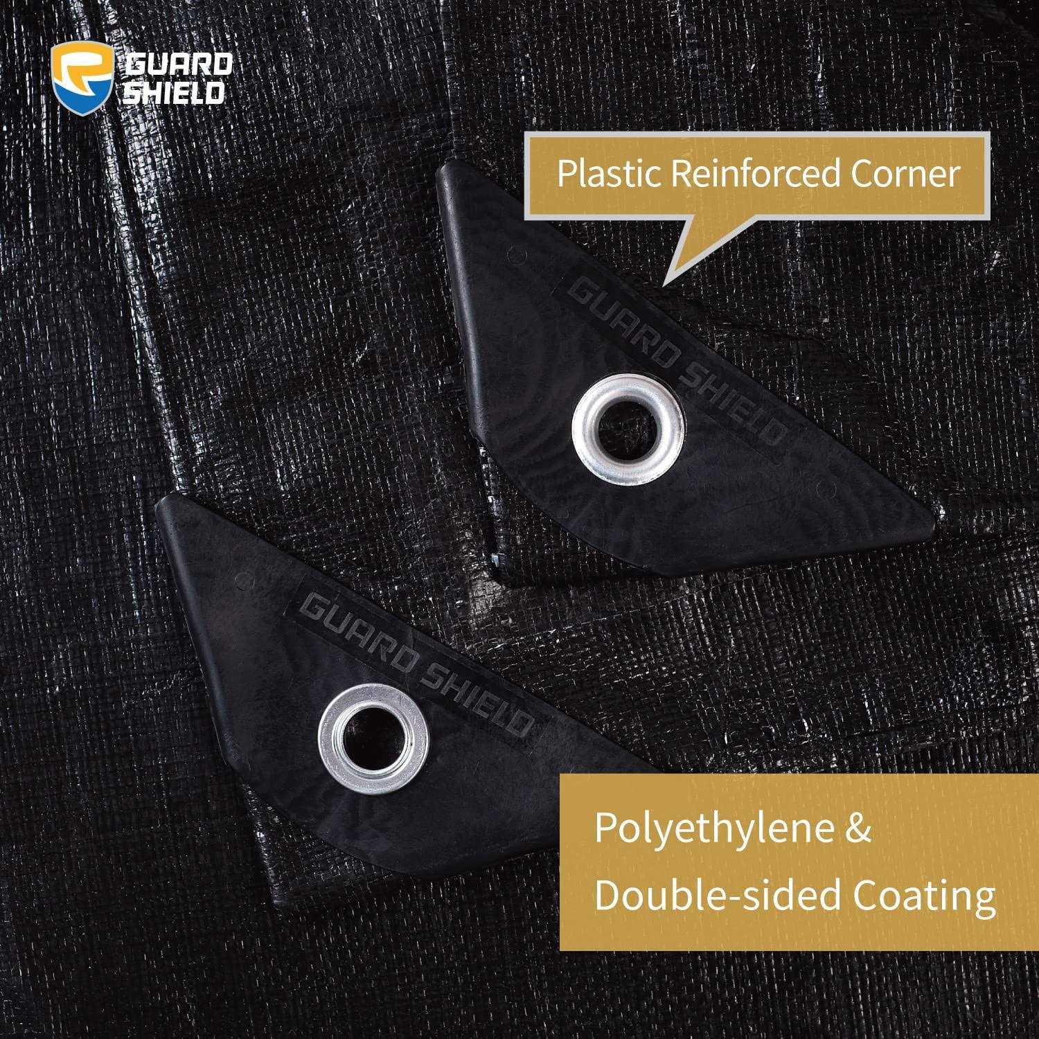 Guard Shield Tarps Heavy Duty Waterproof 10×20 Feet Black Poly Tarp Cover Outdoor Thick UV Resistant Tarpaulin with Grommets 10mil