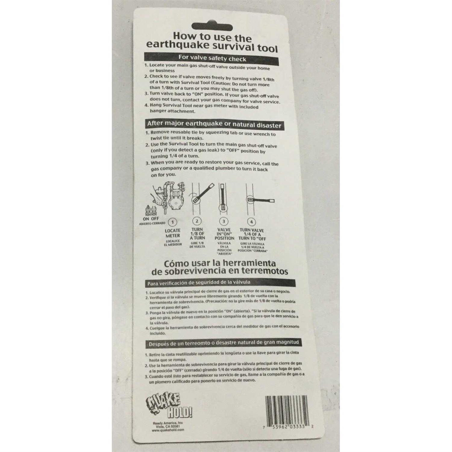 When you encounter an emergency like an earthquake or gas leak in your home shuting off your natural gas can be a prudent move that saves lives. This emergency gas shut off tool will help you get that done. Zinc-plated steel tool made in the USA. Comes with light reflective tape for easy location at night and a zip tie to hang near gas meter. Fits 1/2″ and 3/4″ valves and is easy to use. To shut off gas apply tool to valve and turn 1/4 of a turn. When ready to restore gas supply contact the gas company or a qualified plumber.