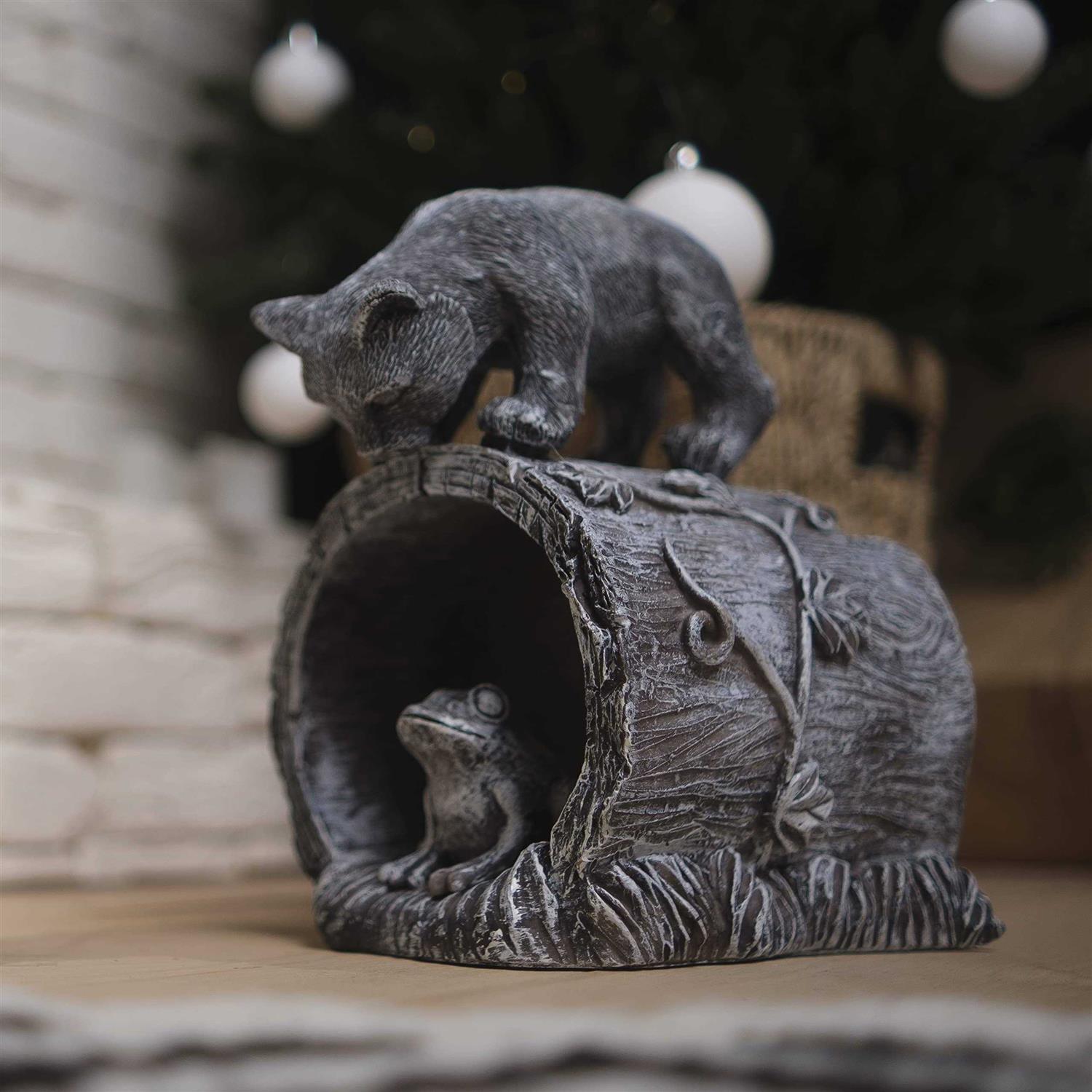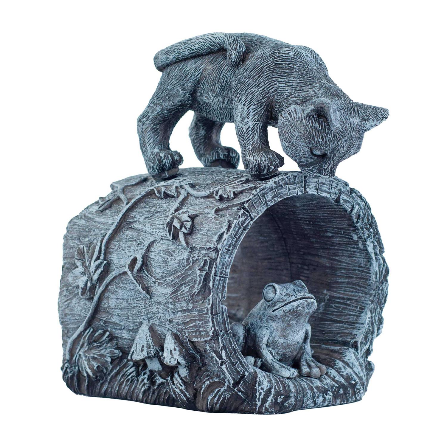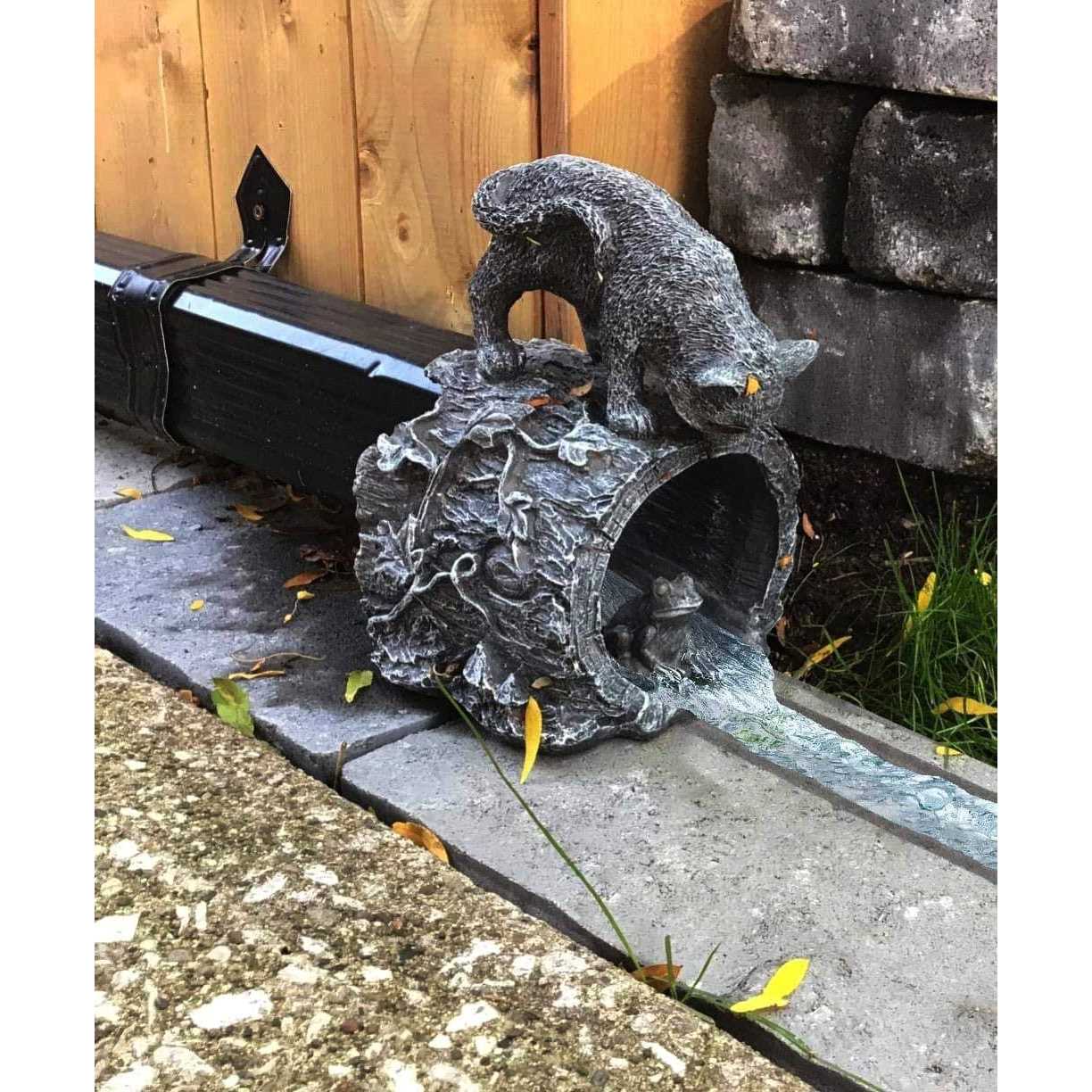 Gutter Downspout Extension – Downspout Splash Block – Downspout Diverter Garden Statue (Playful Chasing Kitty and Frog)