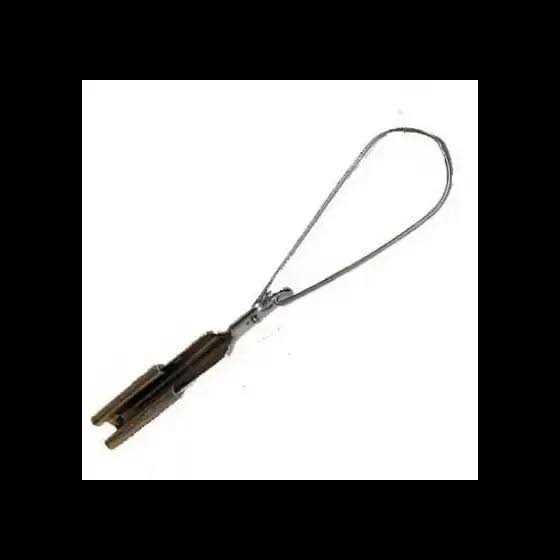 Durable aluminum construction. For dead-ending self-supporting drop wire. Attach directly to bare neutral and anchor to home. Hot wires are braided around the neutral and dropped to service head. Saves conductor since drop wires may be cut to exact lengths. Can be attached to bare neutral at any point in the span. There is a maximum of 2 and a minimum of 6 ASCR and AAAC wire range. There is a 1 Str. maximum, and a 6 Sol. minimum aluminum wire range.