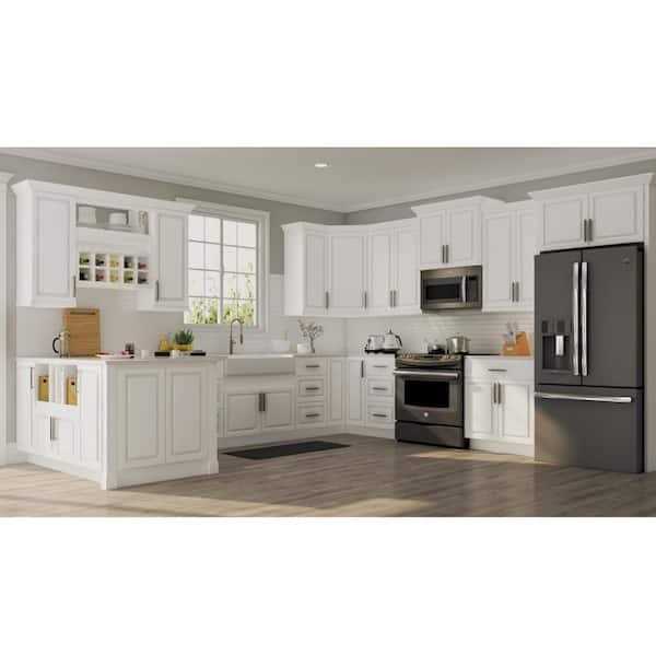 With all the quality construction features you would expect from much more expensive cabinets, Hampton Bay Kitchens provides exceptional value for your beautiful new kitchen. Selected finishes are available in your local store as shown. Hampton Bay cabinetry, designed with classic shaker panel doors, is the perfect solution for budget-savvy consumers who demand quality, craftsmanship and style. Color: Satin White.
